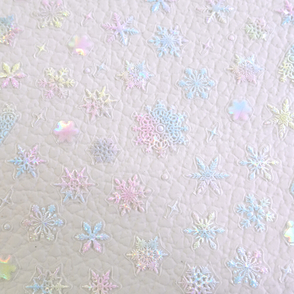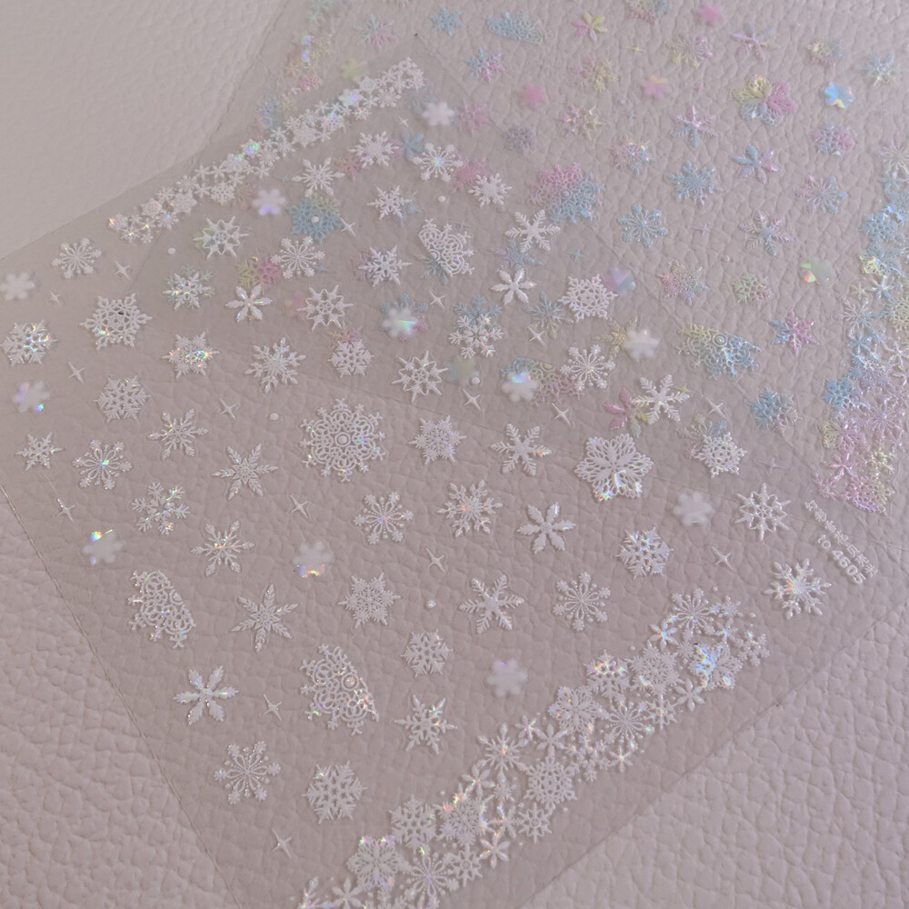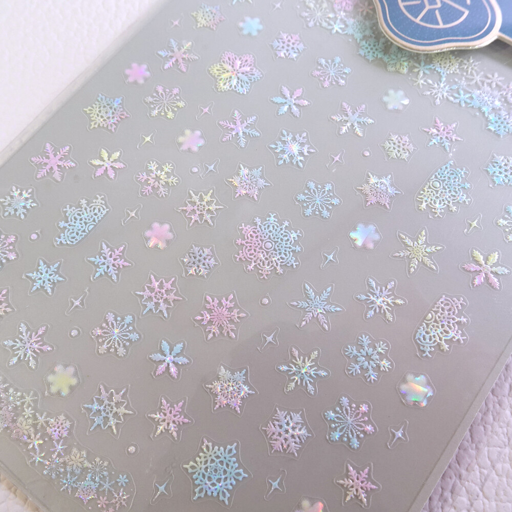 선명하고 입체적인 고퀄 스티커. 탑젤을 도톰하게 올려 스노우볼을 연출하면 예뻐요. 눈꽃 스티커 용량 짱짱 여리여리한 오로라 빛도 예술 (⋆❛ ہ ❛⋆)!