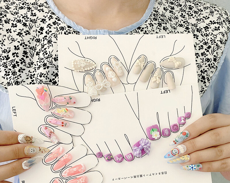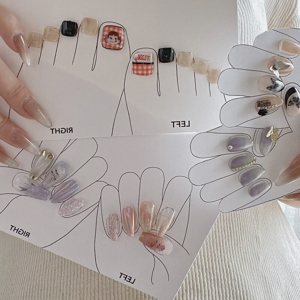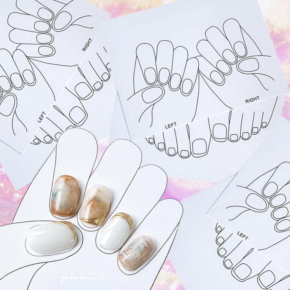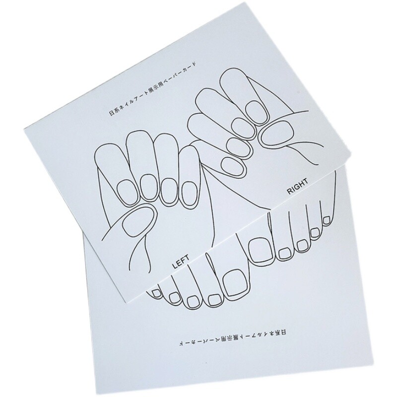 아트 팁 테스터와 촬영 소품으로 인기인 핸드 풋 네일 보드입니다. 두껍고 견고한 하드보드지 소재로 구겨짐 없이 오래 사용이 가능합니다. 코팅해서 사용하시면 이염을 방지할 수 있고 컬러젤이나 글리터 발색을 해보실 수 있어요! 손가락 보드 위에 팁을 나란히 올려놓고 전체적인 분위기를 볼 수 있어서 촬영에도 아주 유용하고 작품에 완성도가 높아집니다. 아트에 질이 상승하는 아이템이니 하나씩 소장 하심 좋아요. ꈍ◡ꈍ