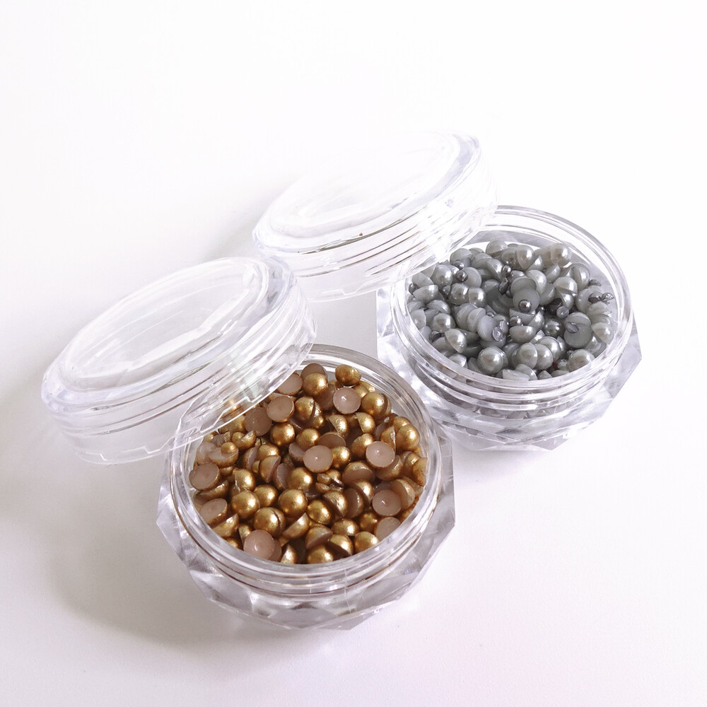 리본네일 디저트 네일 등에 사용하면 영롱하고 귀여운 애쉬 진주 스톤입니다. 실버 + 골드 2가지 컬러에 가장 많이 사용하는 1.5mm , 3mm 사이즈 믹스로 용량 짱짱해서 하나 구비하시면 주구장창 사용각이랍니당!! 빛나는 진주 스톤이 아트를 더욱 유니크하고 우아하게 만들어줘요. (๑•᎑•๑)♬*