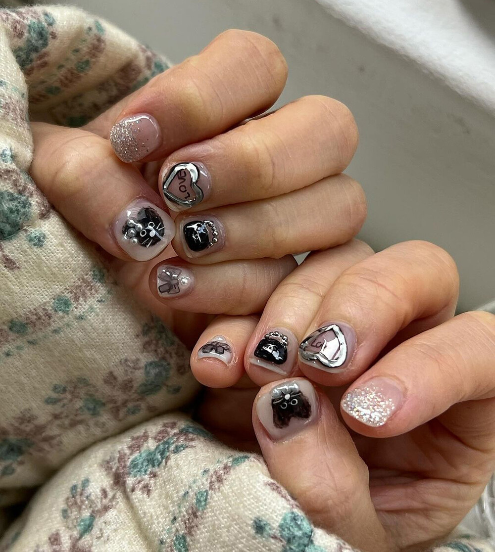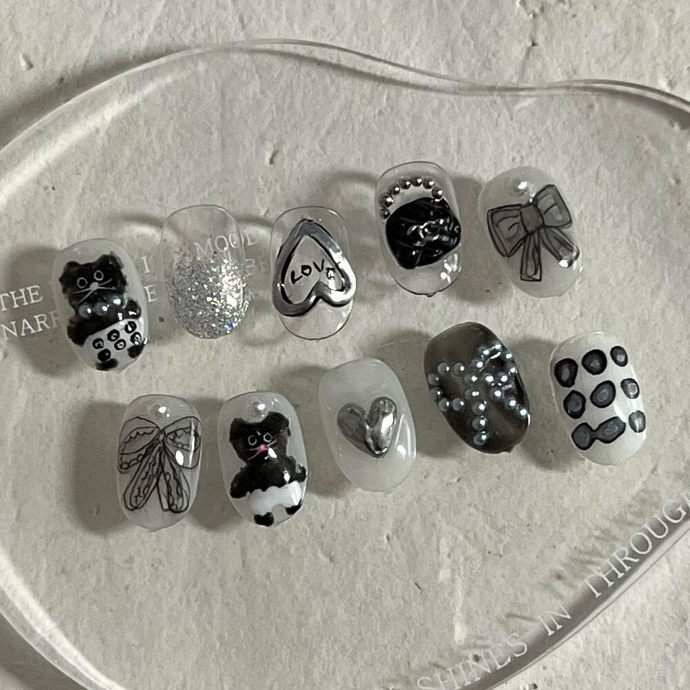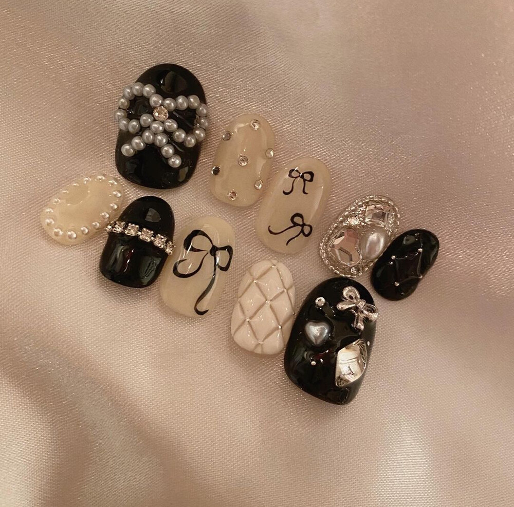 # 실버 러버 # 리본 네일 # 샤넬백 네일 # 디저트네일 # 애쉬 톤다운 진주