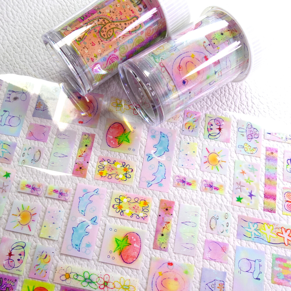 귀엽고 자유분방한 드로잉 패턴이 가득 담긴 감각적인 네일 포일 2종 입니다. 비비드한 컬러와 위트 있는 그래픽이 팝한 무드를 연출해 주며, 아트에 포인트를 더하기 딱 좋아요. 단독으로 붙여도 귀엽고 믹스매치하면 나만에 트렌디한 스타일이 완성 됩니다.