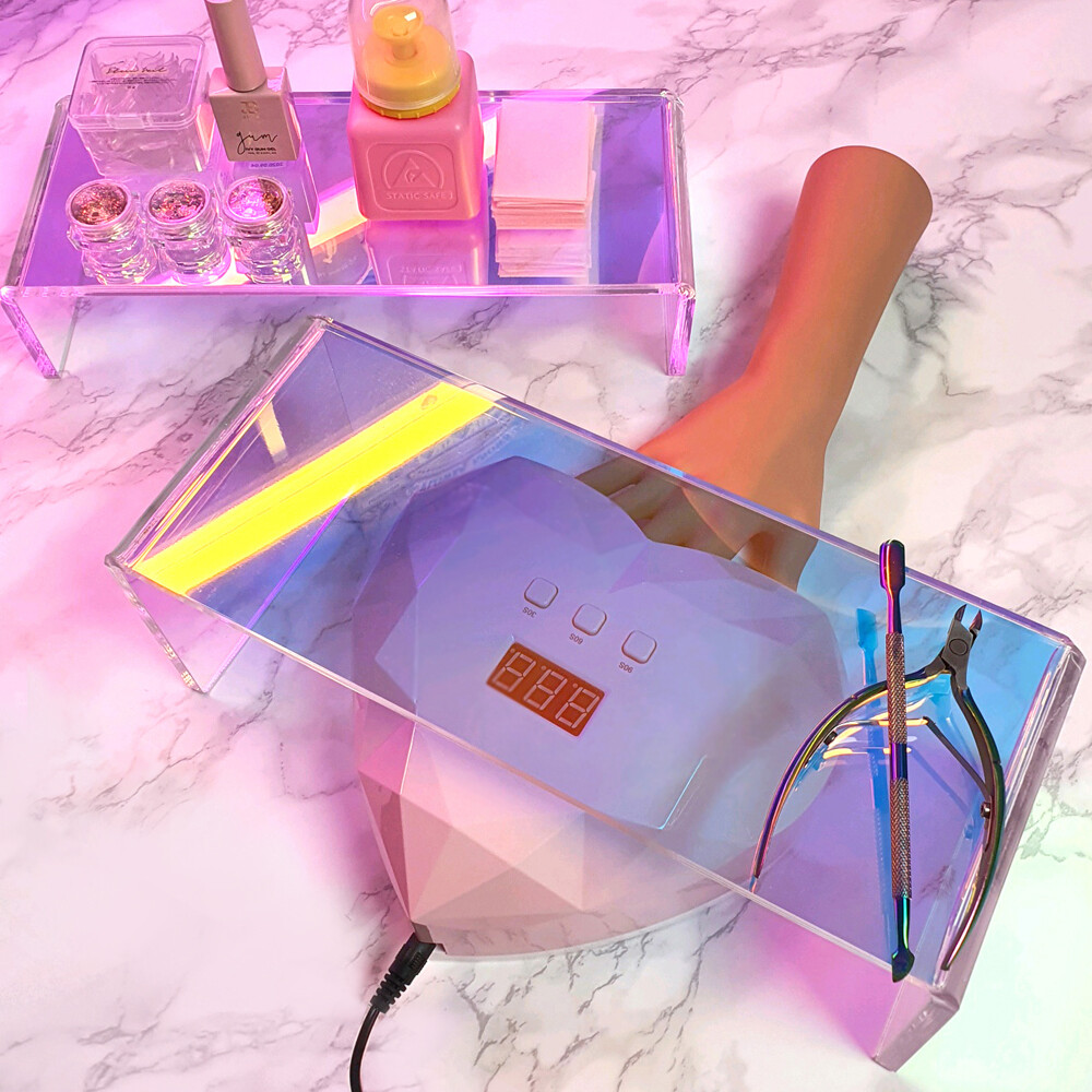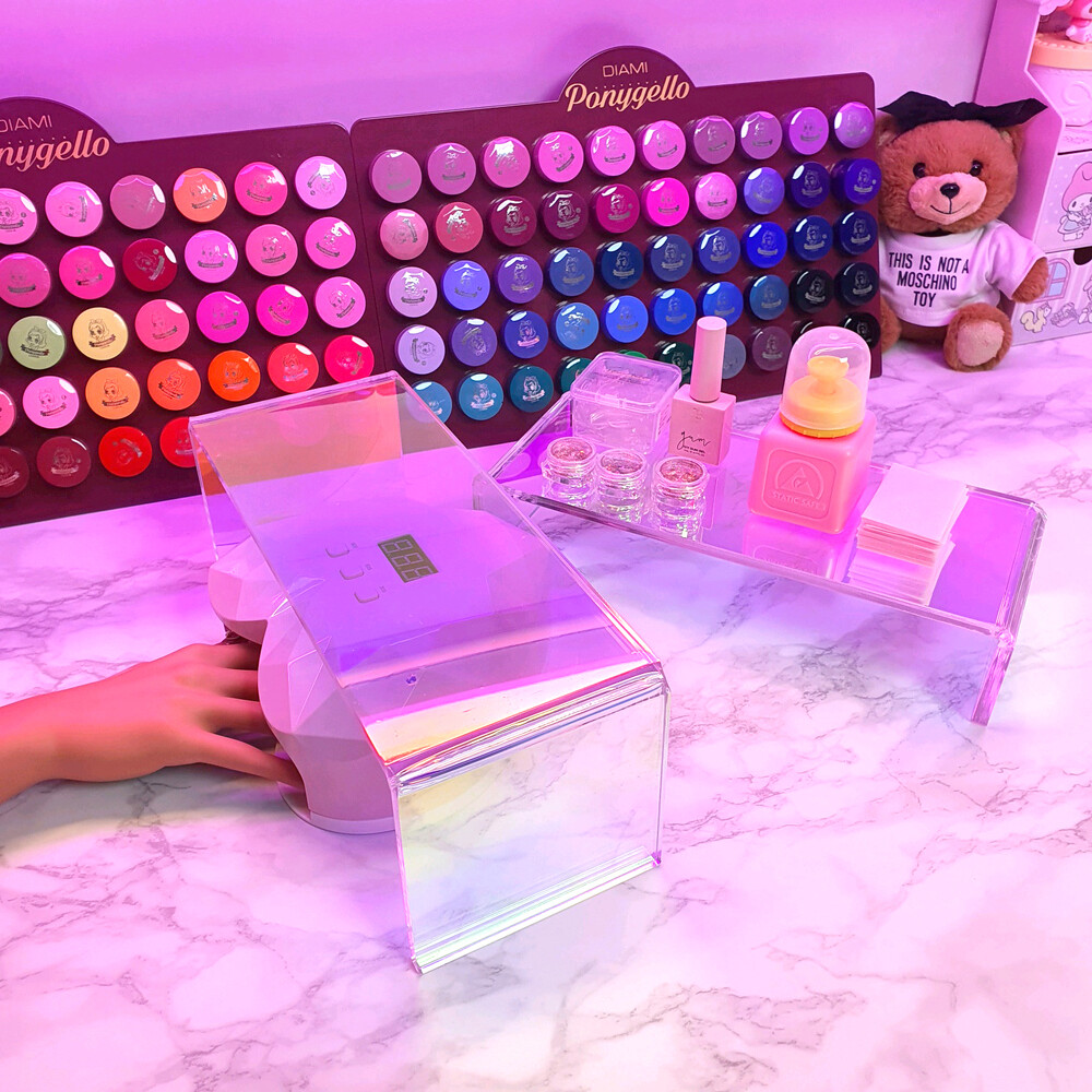네일 램프를 넣어 책상 공간을 절약할 수 있습니다.