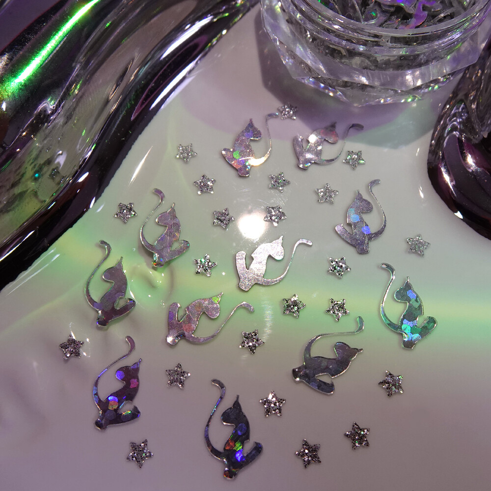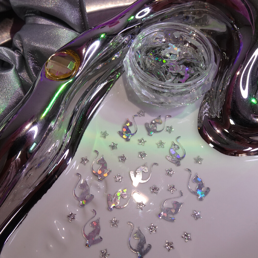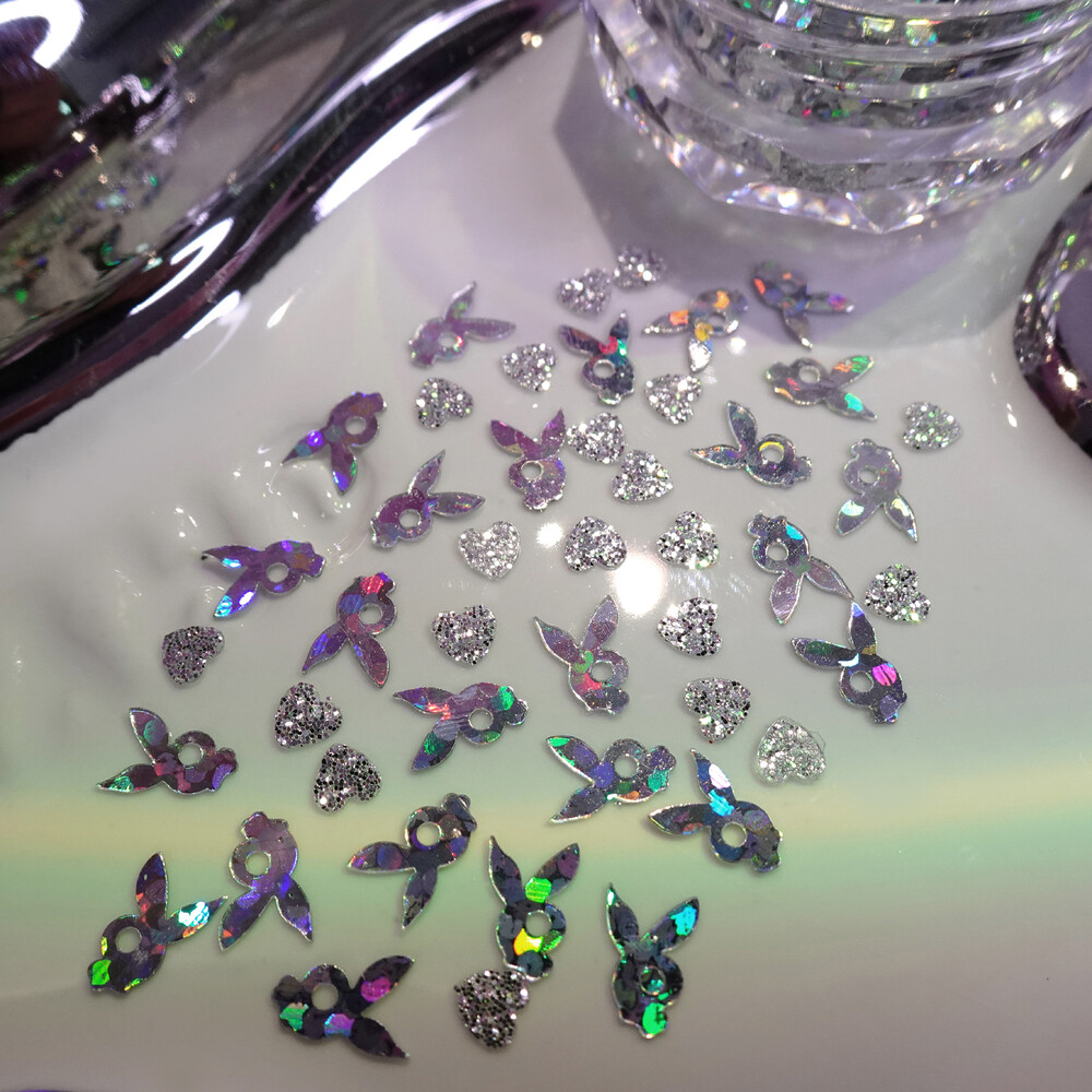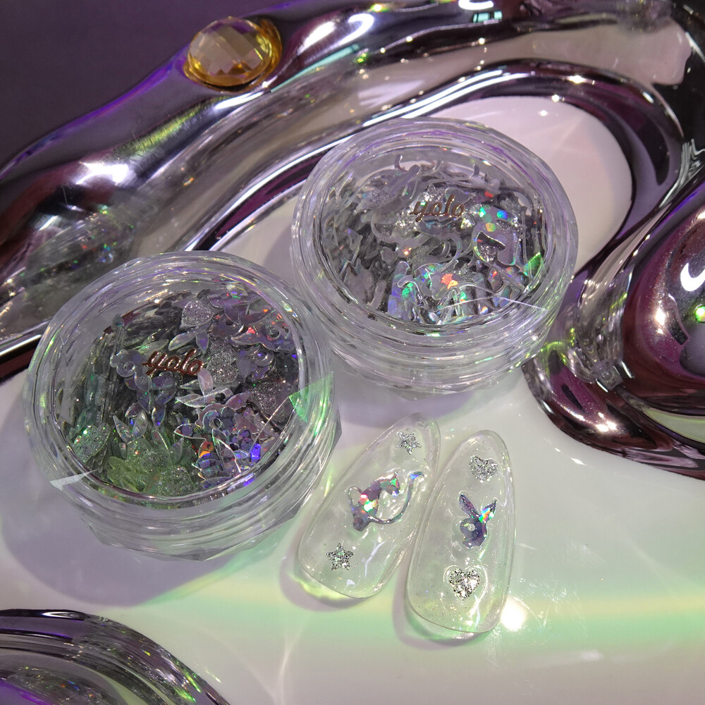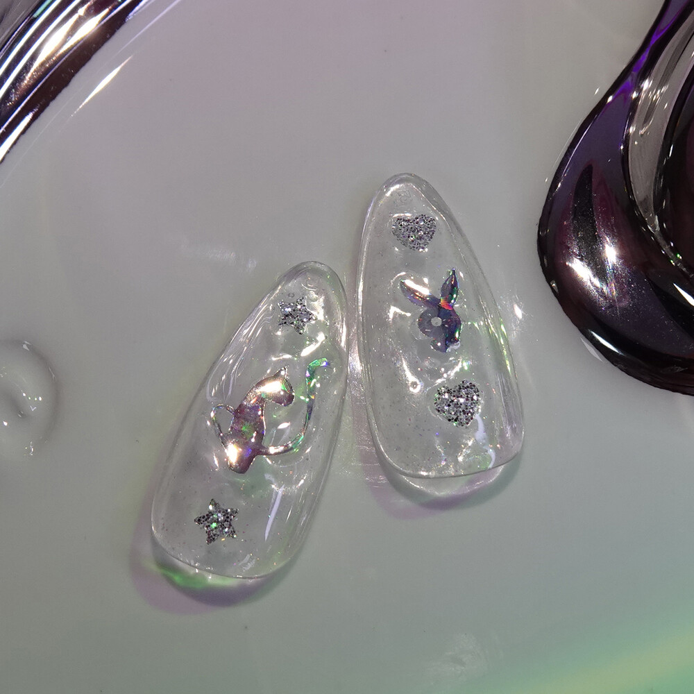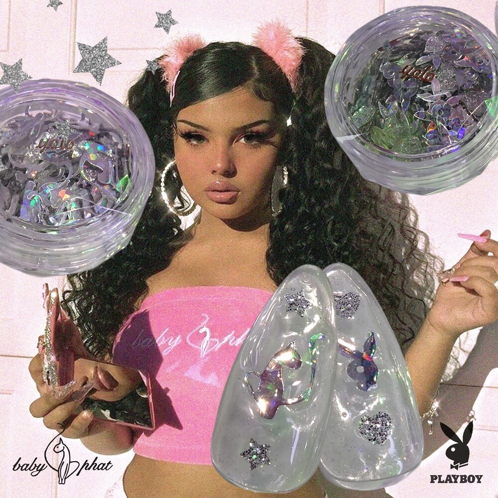 2000년대 핫걸이라면 모를수 없는 추억의 브랜드! 베이비펫 플레이보이 로고 시리즈 글리터 입니다. 롱네일에 아트하면 힙하고 섹시한 무드의 네일을 연출 하실 수 있어요. 실버 홀로그램 로고와 트윙클 스팽글 하트 별 믹스 조합으로 탑젤에 포게주면 다이아몬드처럼 세상 영롱하게 빛나요!! 실물 듀금 (⋆❛ ہ ❛⋆)!