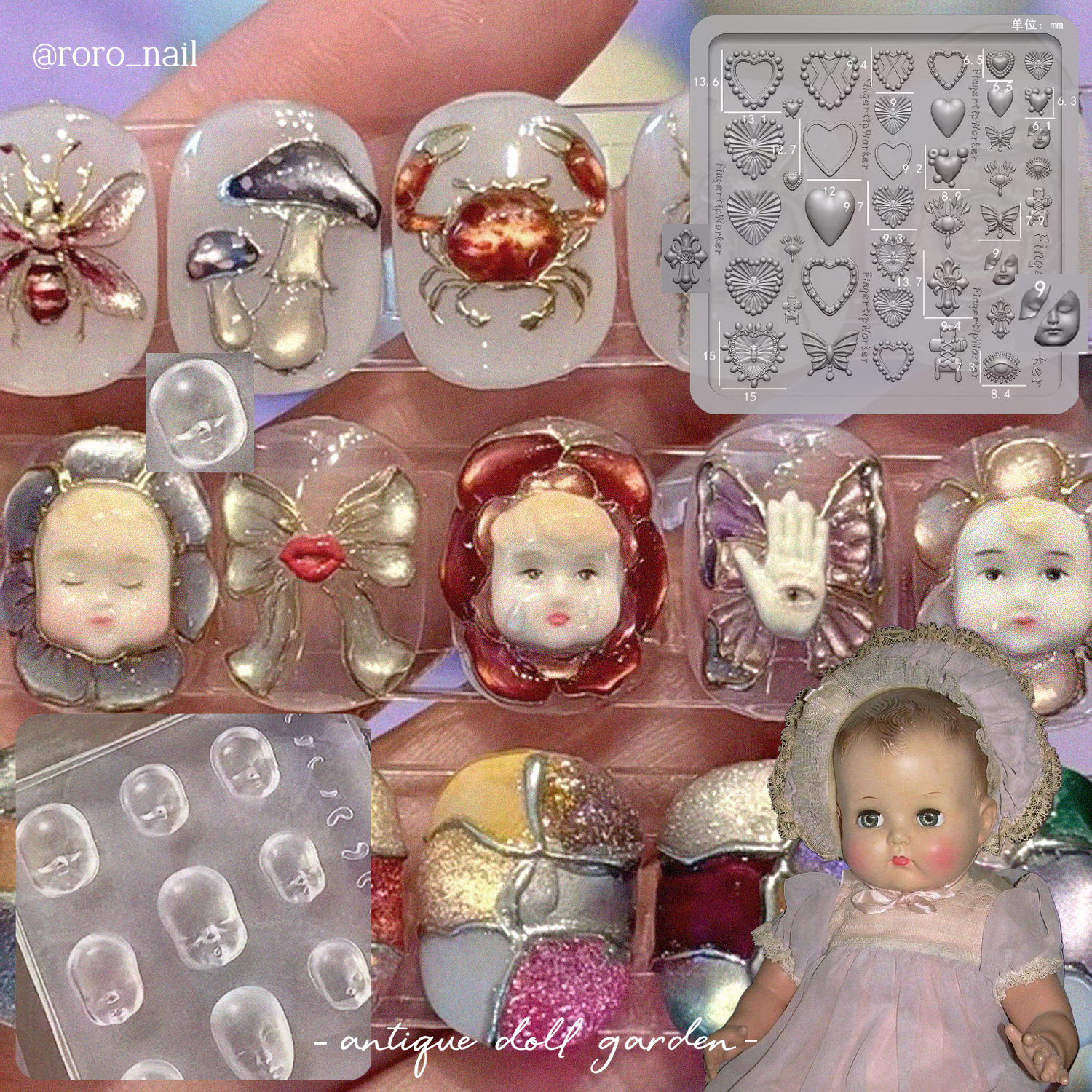 저번 달 도쿄 네일 엑스포에서 선보인 로로쌤의 빈티지 아기인형 아트가 너무 귀여워서 따라 해보고 싶은 분들을 위해 동일한 분위기로 작업할 수 있는 몰드를 입고했어요.