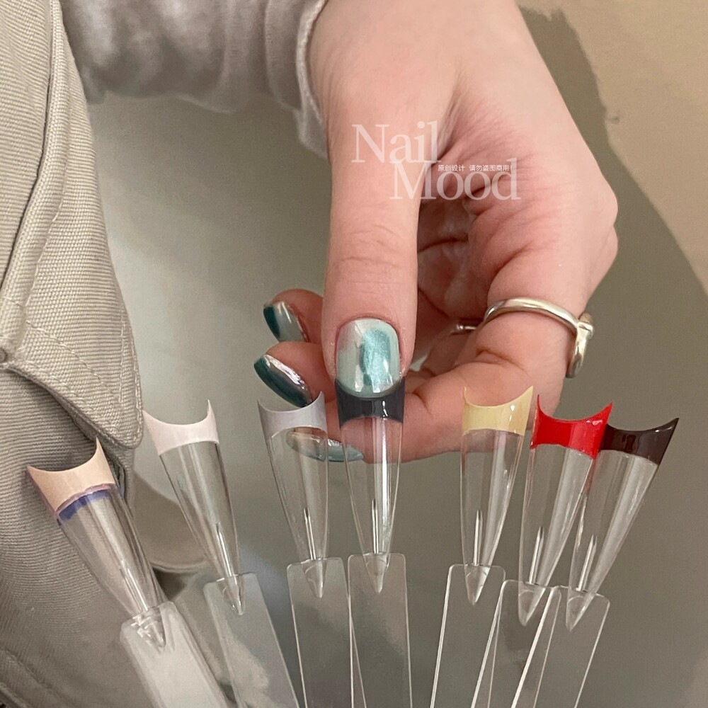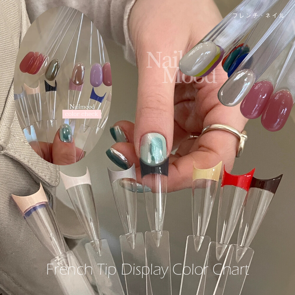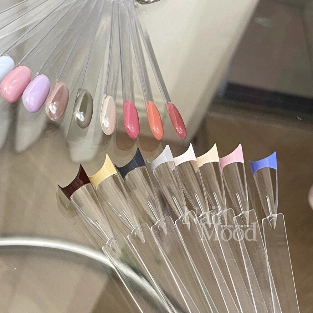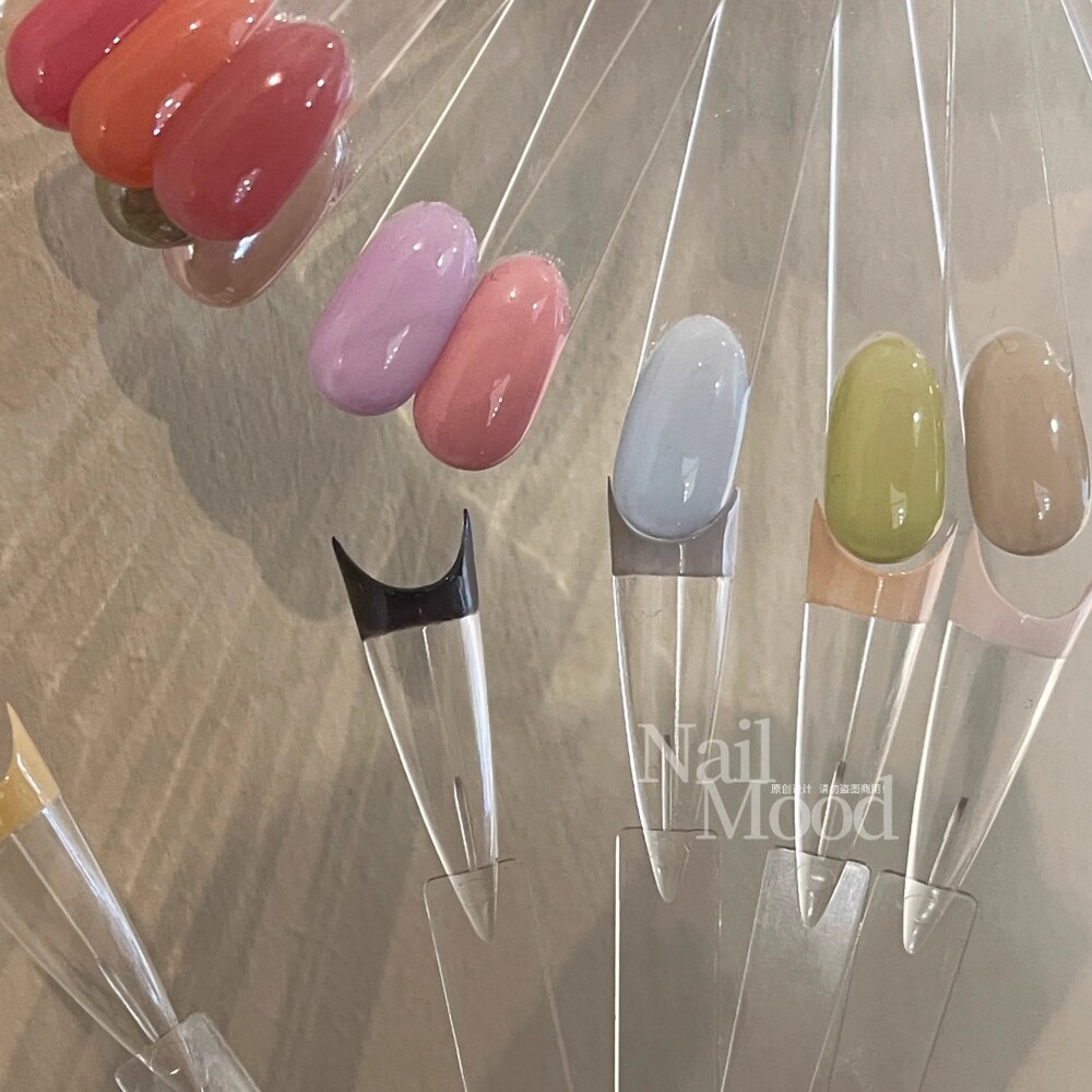 어울리는 손톱 컬러를 비교해 볼 수 있는 프렌치 가드 스틱입니다. 프렌치로 칠해둔 팁을 손님 손톱 위에 올려 웜 쿨톤 체크를 빠르게 해 보실 수 있어요 라운드 모양은 전체적으로 동글동글해서 시럽컬러 칠하면 귀여워요. ꈍ◡ꈍ