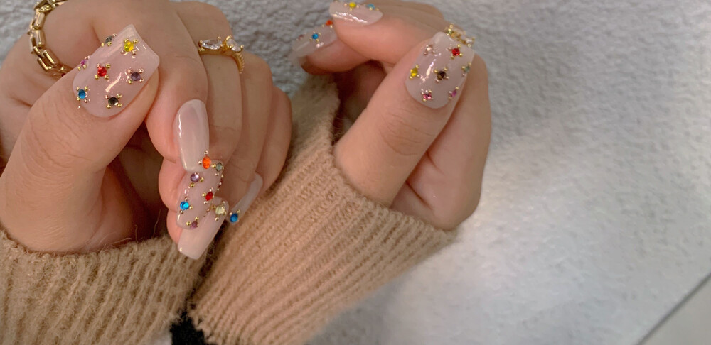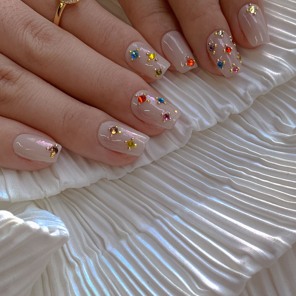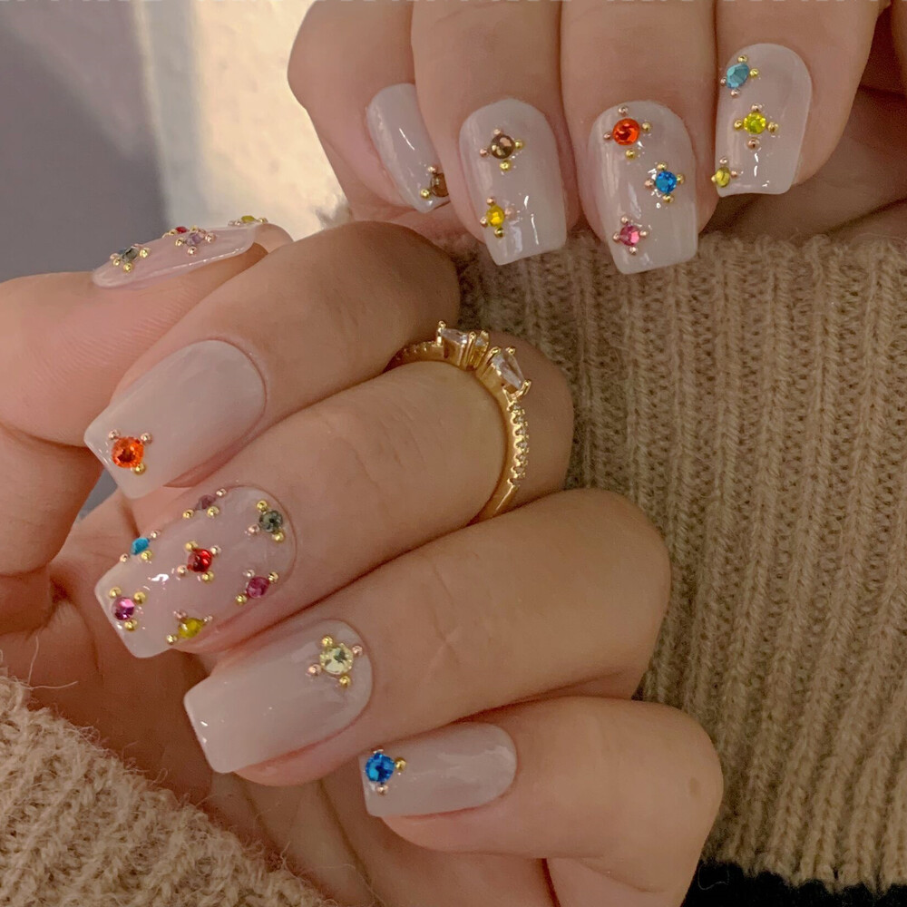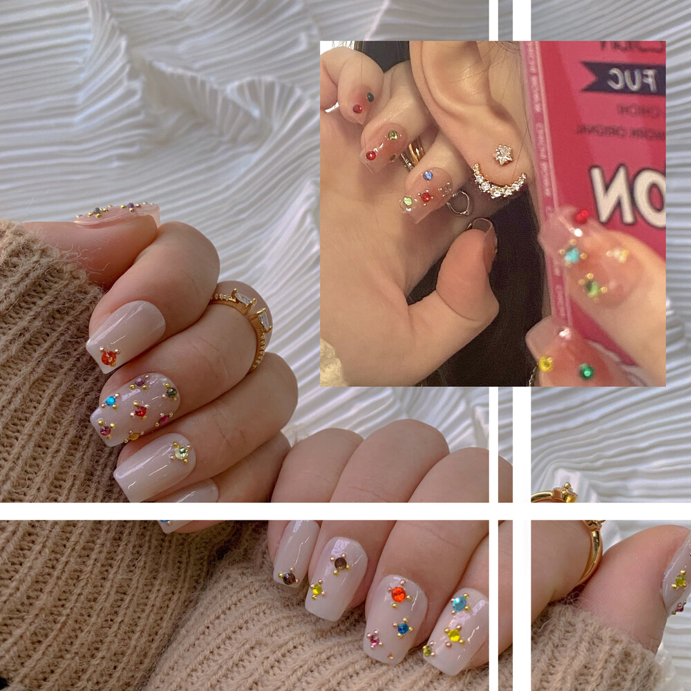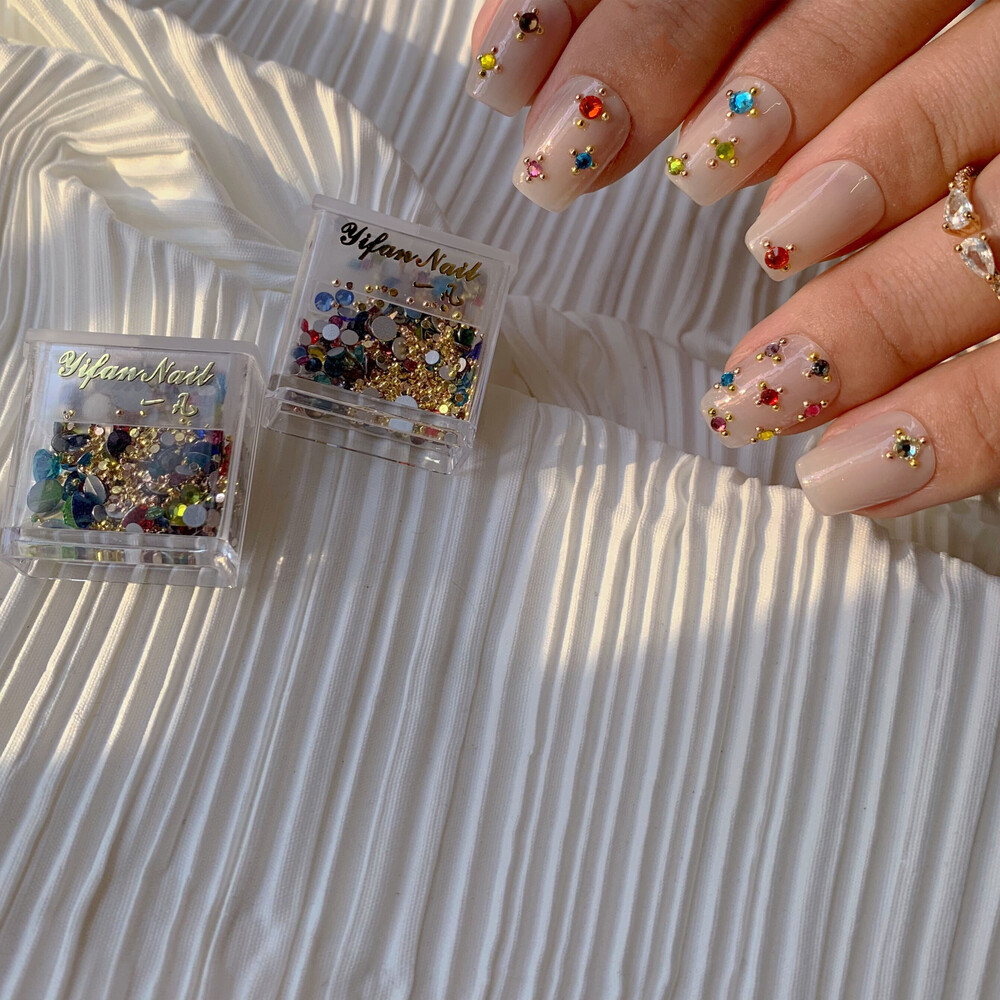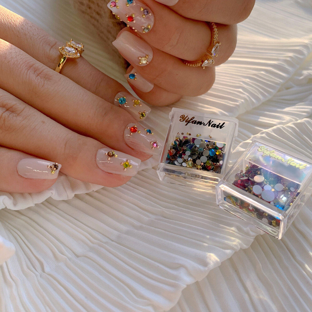 컬러 플렛 레인보우 스톤 반볼참 믹스