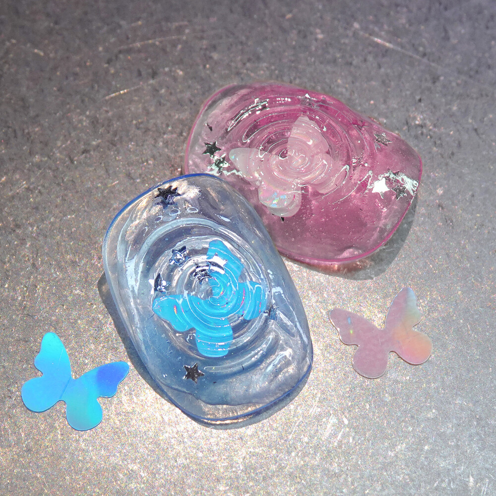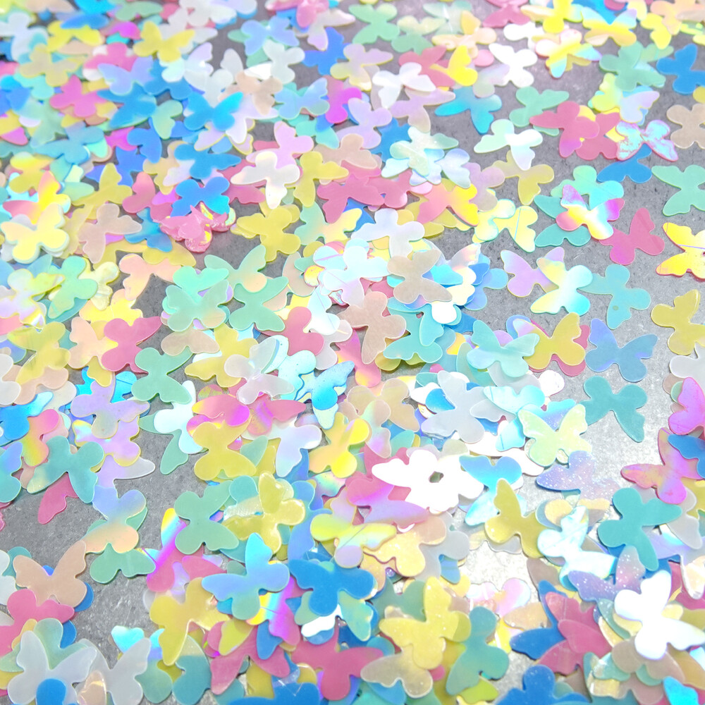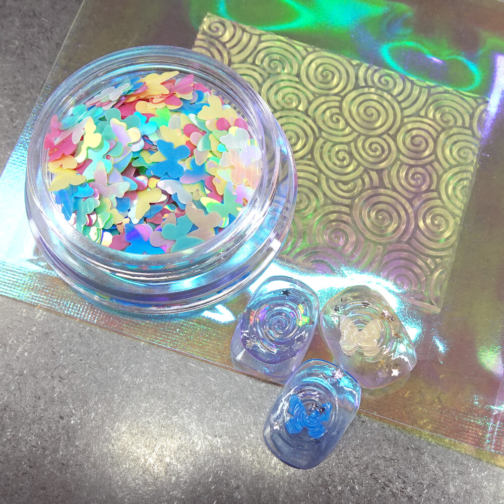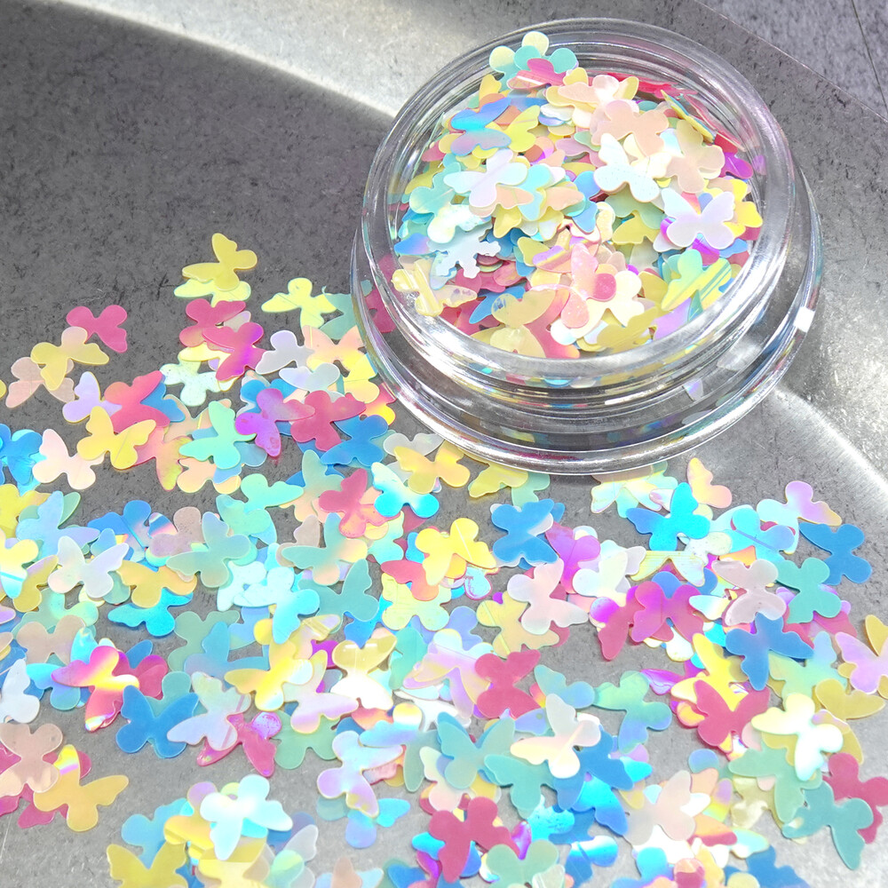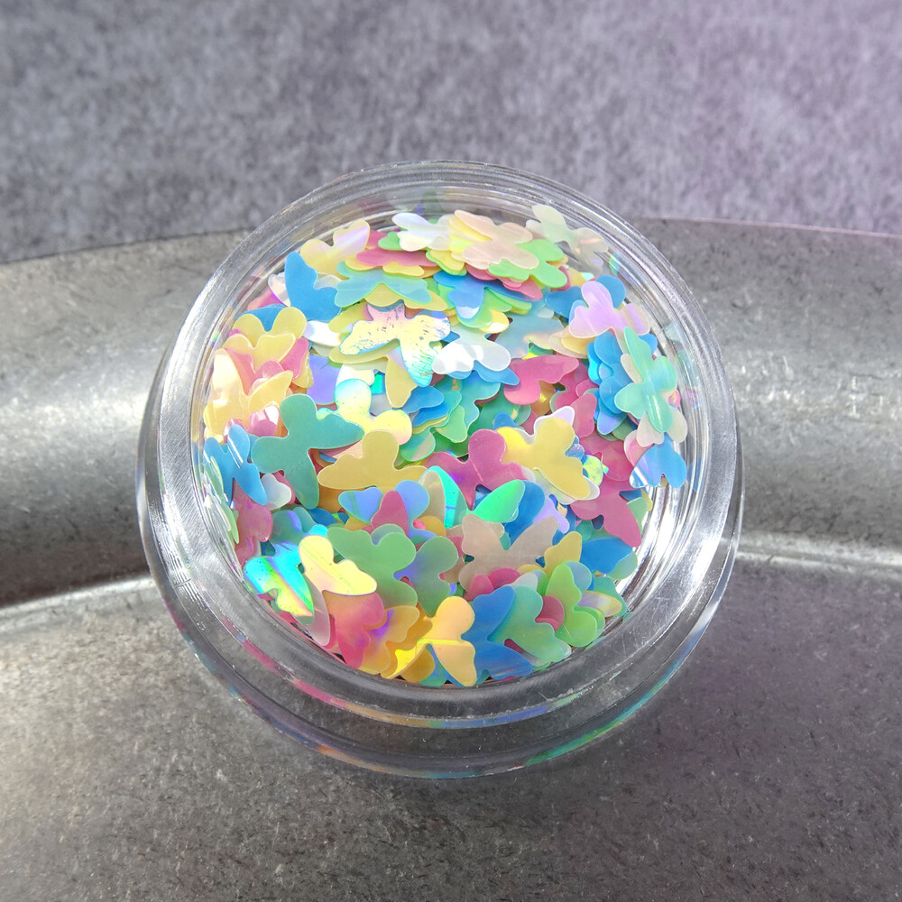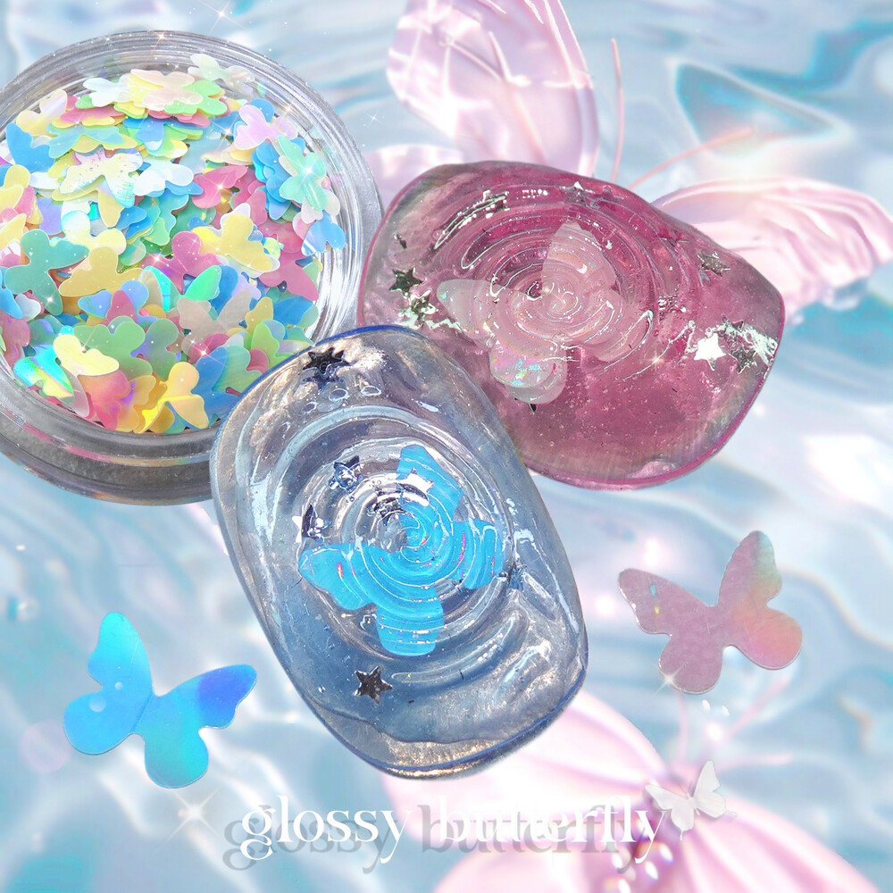 정면은 글로시하고 움직일땐 홀로그램이 반짝반짝 예쁜 파스텔 나비 글리터 입니다. 기존 나비보다 큼직한 5mm 사이즈라 물결네일 포인트로 귀여워요. 물에 퐁당 빠진 워터릭한 나비를 연출 해 보세요. εїз