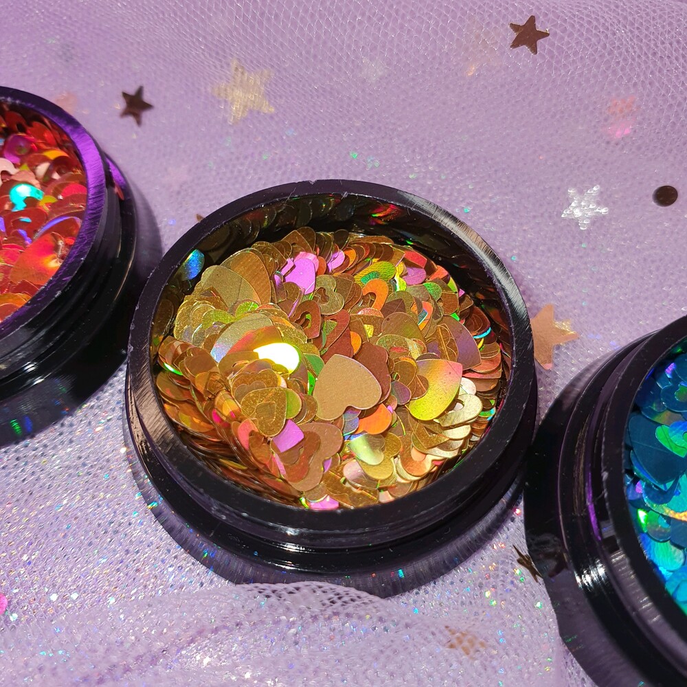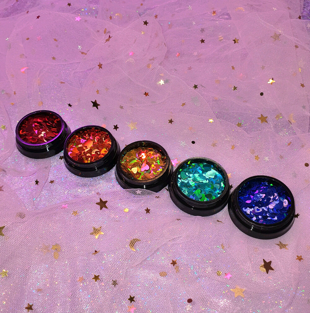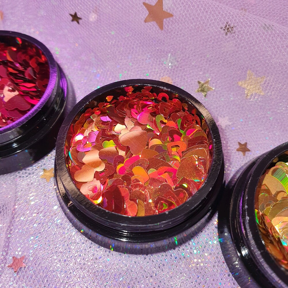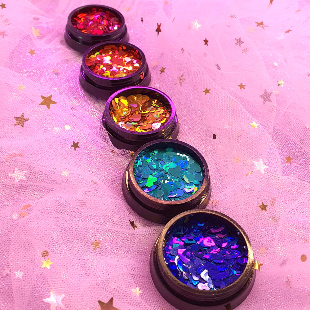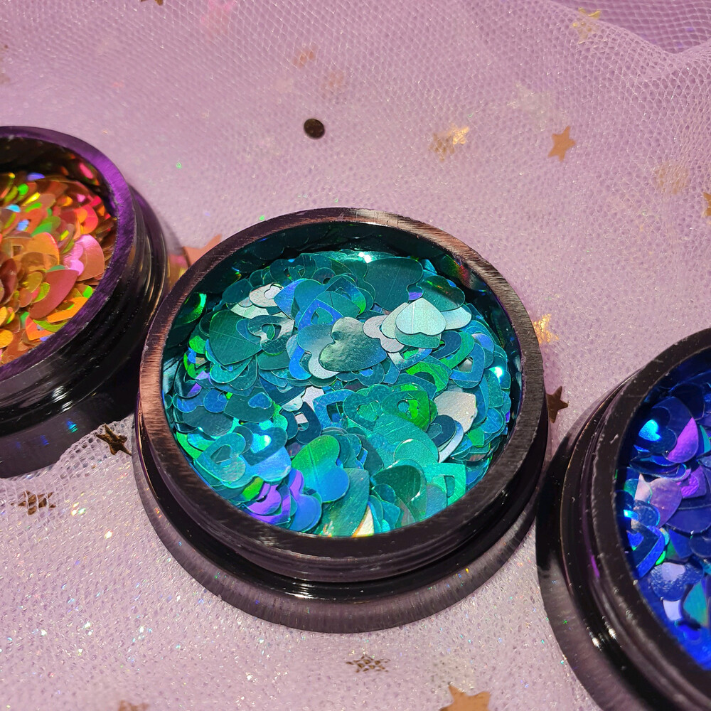 키치한 네일 찰떡! 요정같이 사랑스러운 오로라 빛 펀칭 하트 글리터 입니다. 탑젤에 포게주면 얼마나 영롱하고 예쁘게오,, 시즌1에 비해 글리터가 실크처럼 얇아서 오버레이 두껍게 안해도 된답니다! 색감 짱 용량도 짱 성비 최고에요. 소다 네일에 사용하면 넘 귀여워요 ♡´・ᴗ・`♡