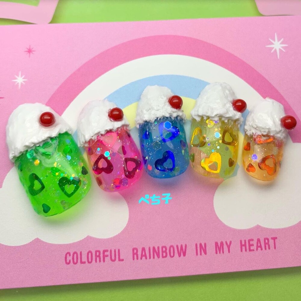 칵테일 네일 _ 레인보우 펀칭 하트 글리터 시즌3
