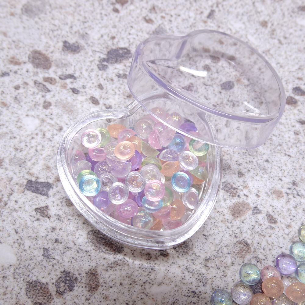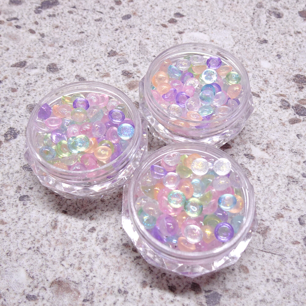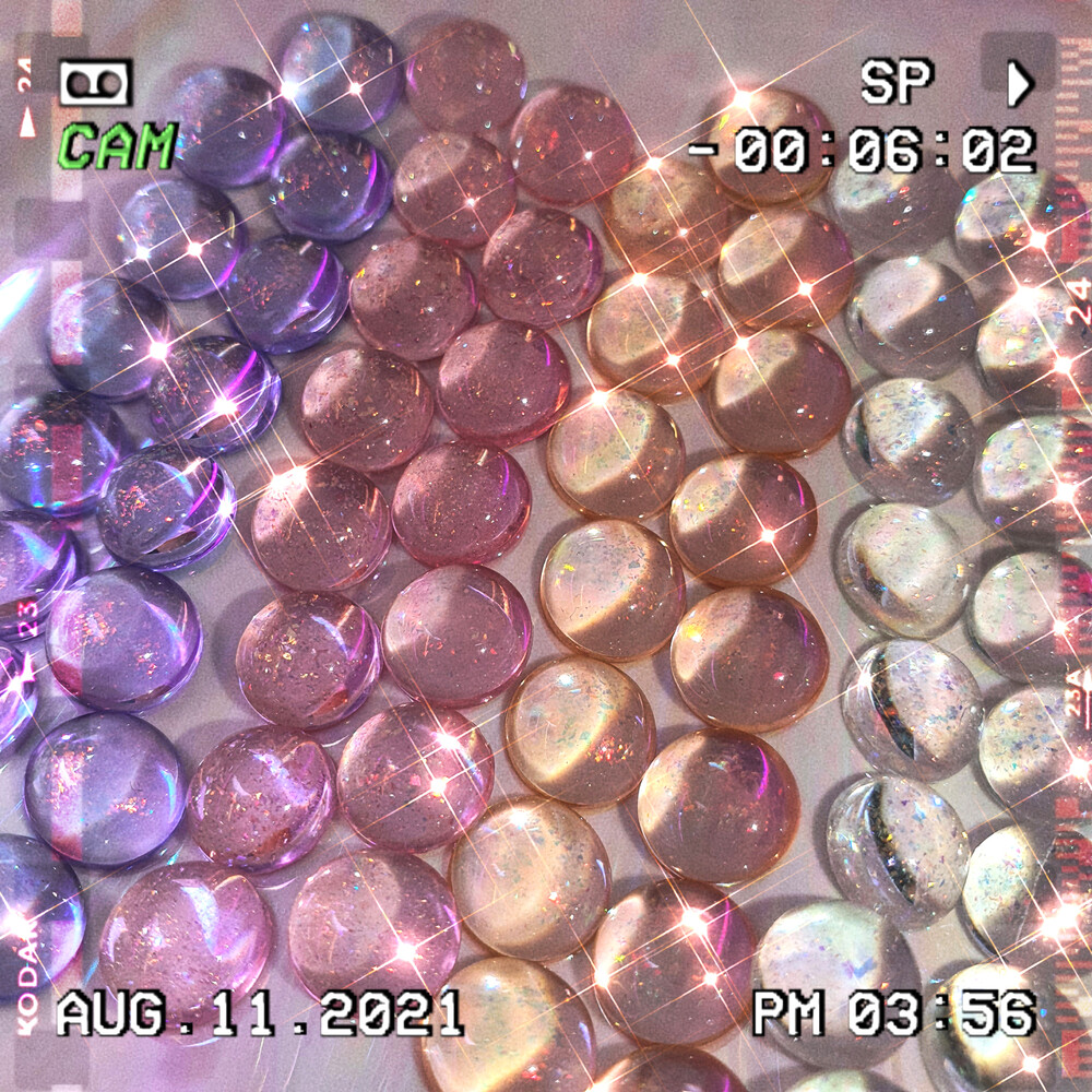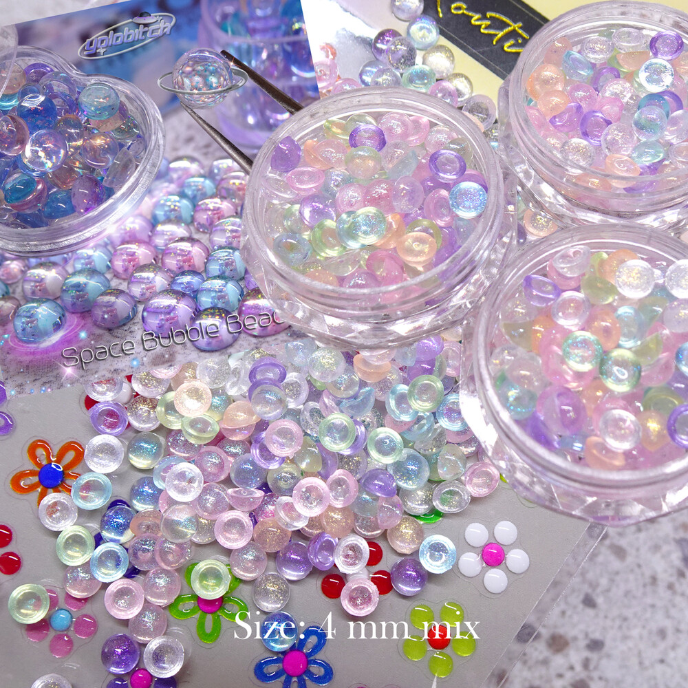 오밀조밀 홀로그램 포일이 들어있는 우주를 닮은 클리어 스톤입니다. 스크레치 없이 을매나 영롱하고 예쁘게오,, 요아이는 3가지 사이즈 6컬러 믹스로 색감도 예쁘고 용량도 짱짱해요. 클리어 엠보젤로 우주처럼 테두리 연출해서 아트해주면 넘 귀여울거같아요. y2k 네일 포인트로 쵸 카와이,, 짱 옙브댜 .• ✯ ★ * °