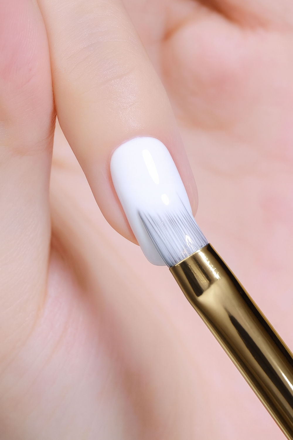 큐티클과 후리엣지에 약간의 간격을 두고 중앙 위주로 도포합니다.