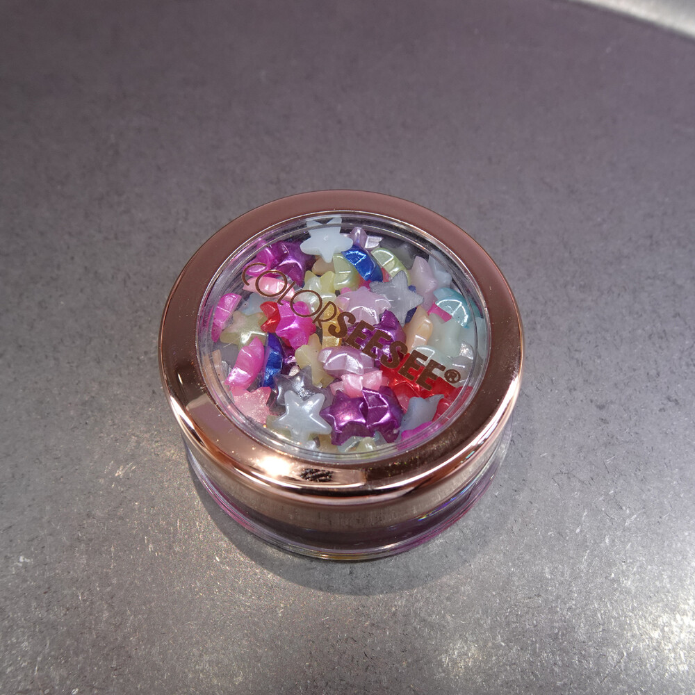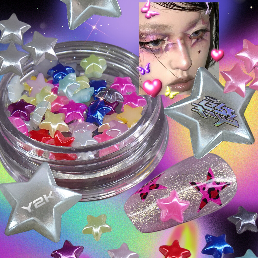 알록달록 매탈릭한 y2k 슈팅스타 별 파츠 입니다. 큰별은 스티커나 로고를 그려주면 힙하고 예뻐요. 작은별 키치네일 포인트로 사용하기 좋아요 *・° ✨