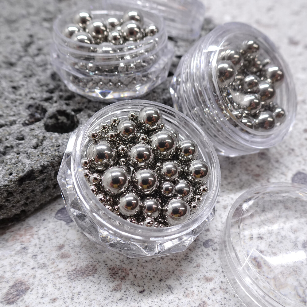y2k 유니크 네일에 활용도 높은 힙 무드 실버 매탈 스틸볼 입고. 기존에 밝은 실버 컬러 보다 살짝 다크한 그레이 색상으로 더욱 분위기 있고 예뻐요. 5가지 사이즈에 150개입 대용량 세트 입니다. ꕤ.*・。゚ ☘