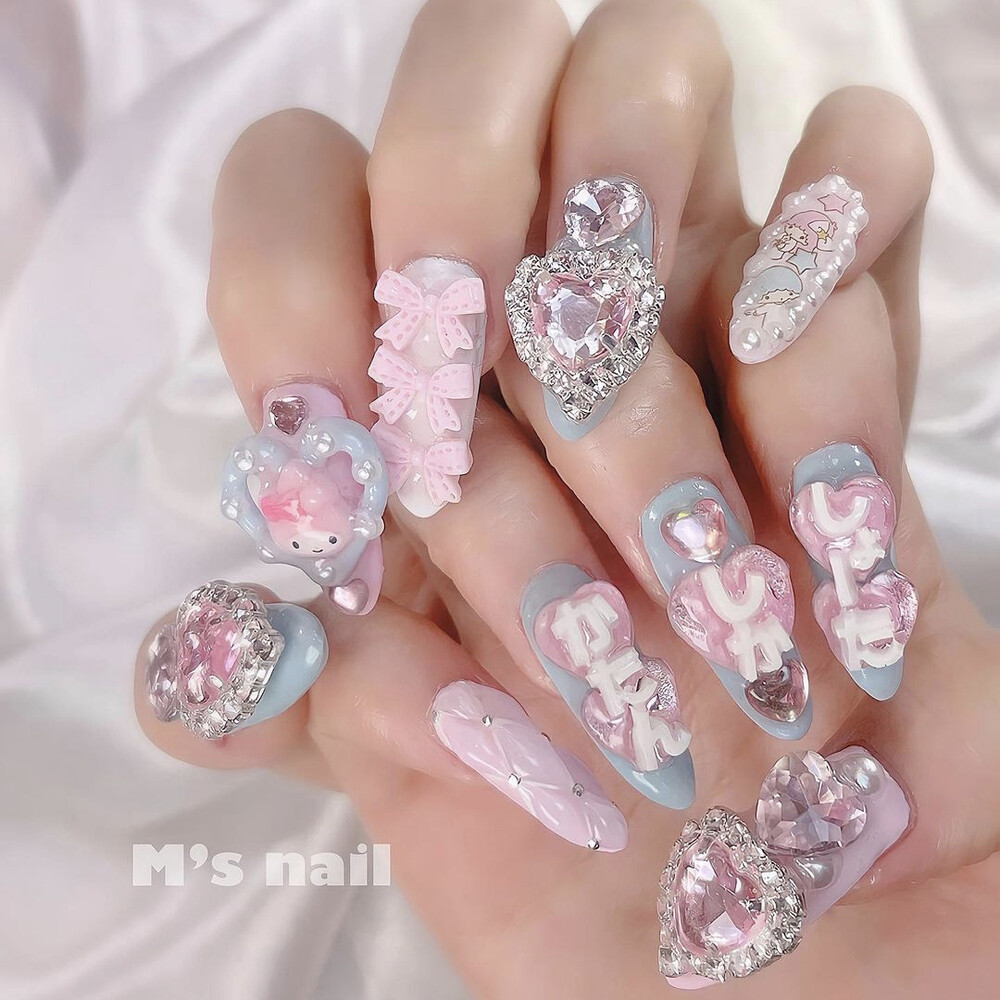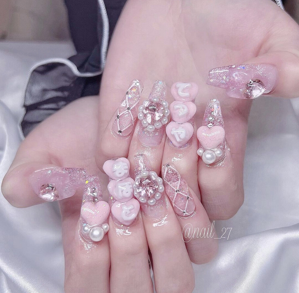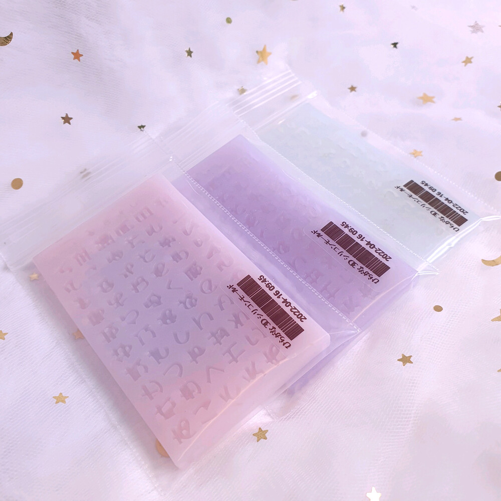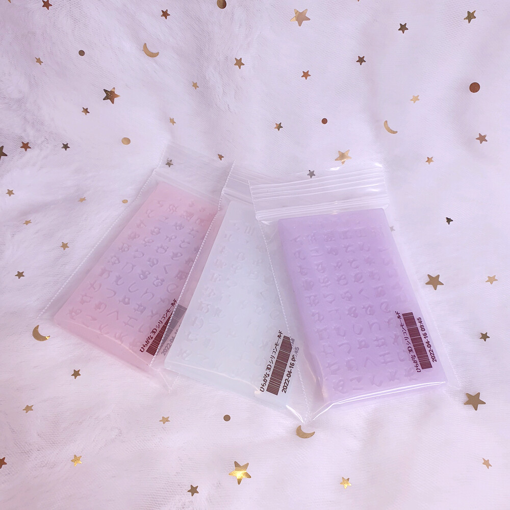도쿄 핫! 키치네일 스트릿 네일 등에 포인트로 올려주면 유니크하고 귀여운 엠보 통통한 히라가나 몰드 입니다. 숫자도 같이 포함되어 있어서 생일이나 닉네임 등 귀여운 단어를 조합해서 파츠 만드는 재미가 아주 쏠쏠해요. 글씨도 쪼꾸미해서 하트몰드안에 가둬주면 넘 예쁘고 키치 하답니다 ♡⁼³₌₃