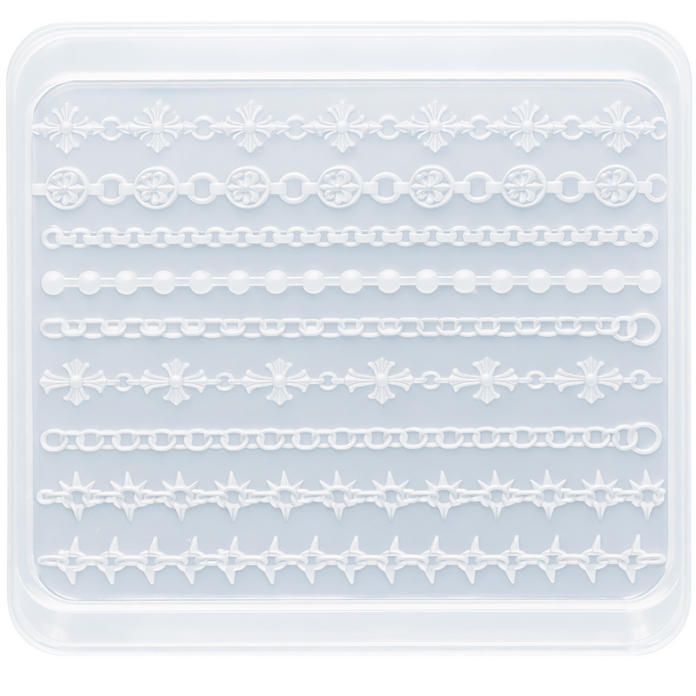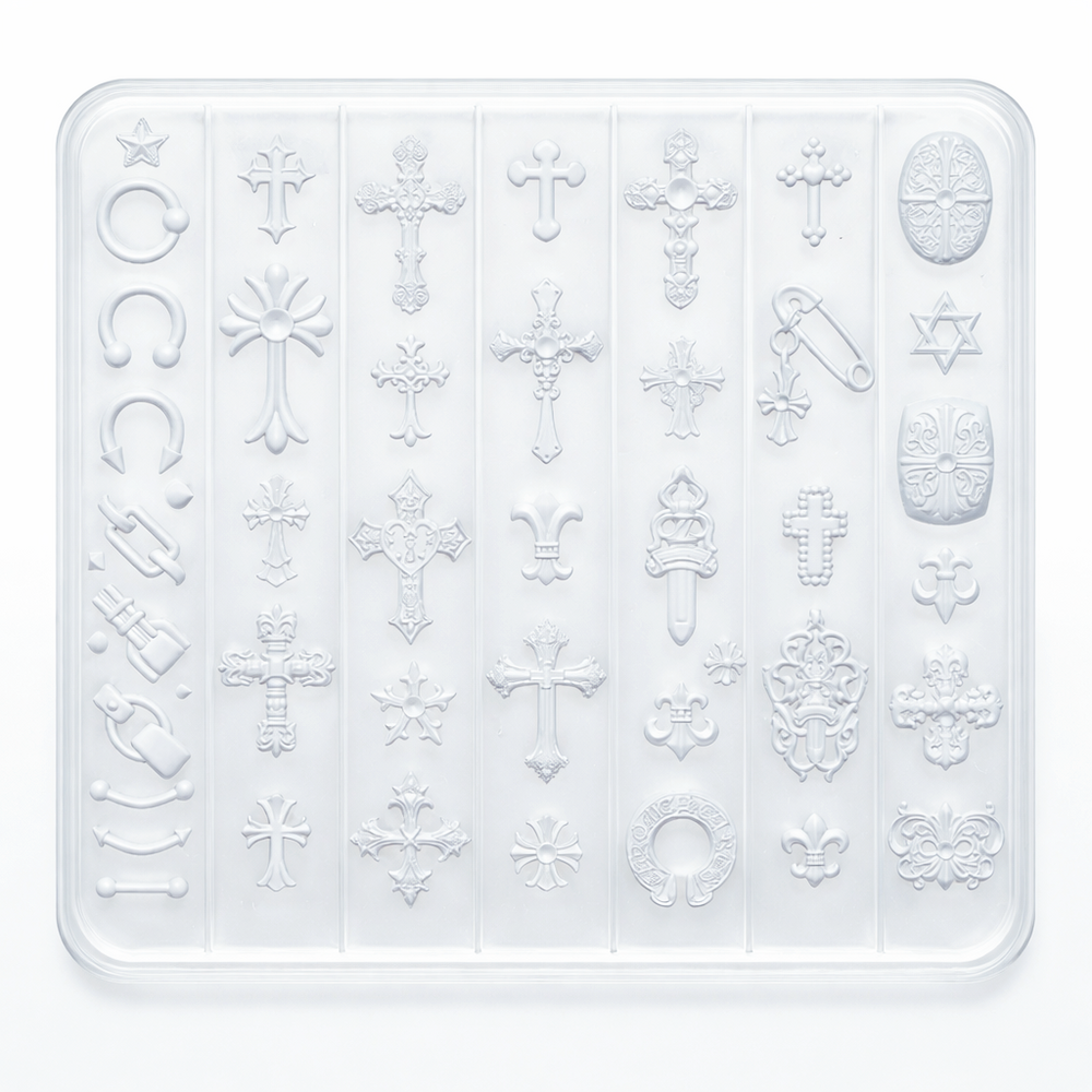 온갓 크롬 하츠 디자인 다 떄려 넣은 대용량 신상 몰드에요. 전체적으로 힙한 요소 한가득이고 활용도 높은 구성에 대용량 까쥐,, 뭐하나 빠질게 없는 완벽한 크롬 몰드니 무조껀 소장하세요.