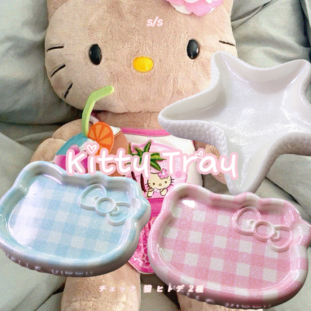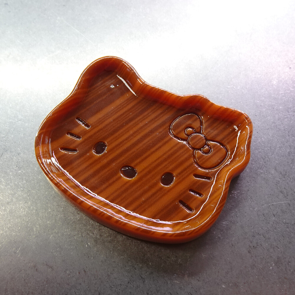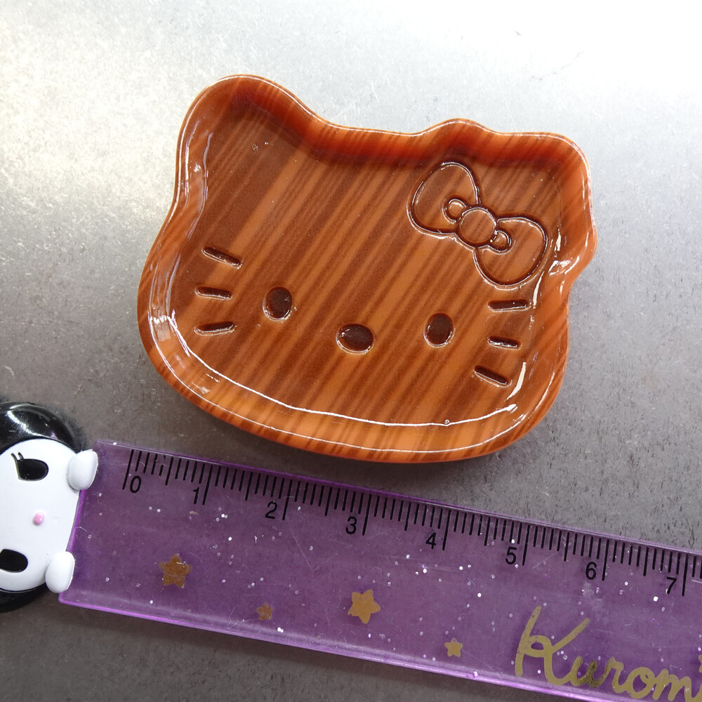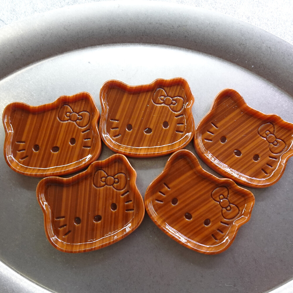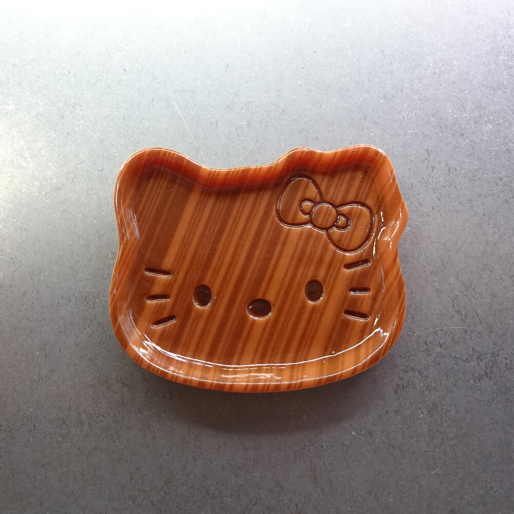 키티 얼굴이 각인 되어있는 우드 제질 신상 트레이에오.