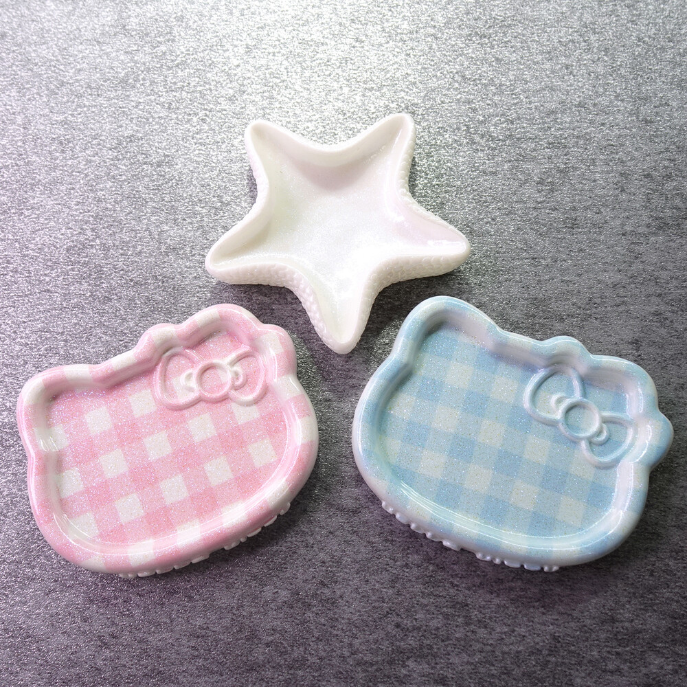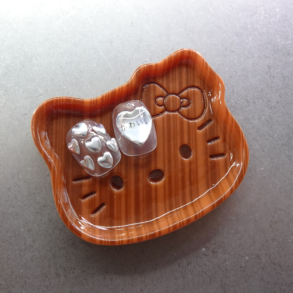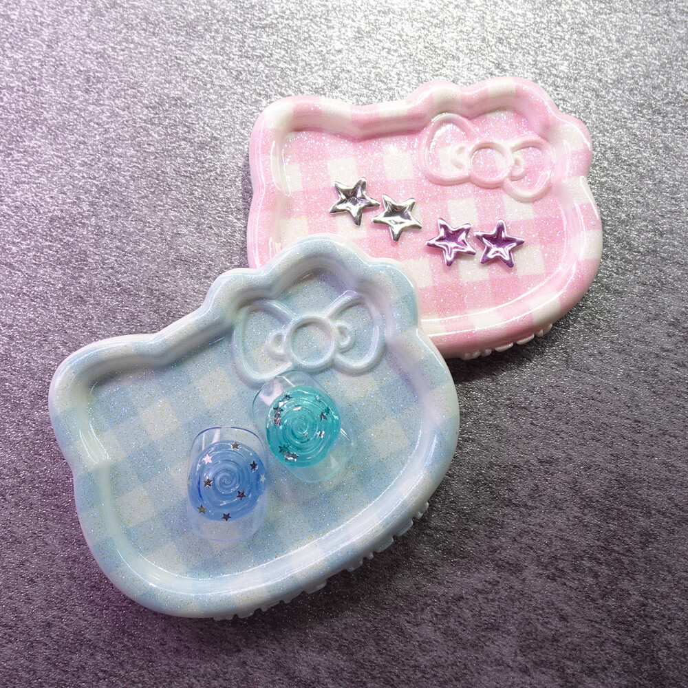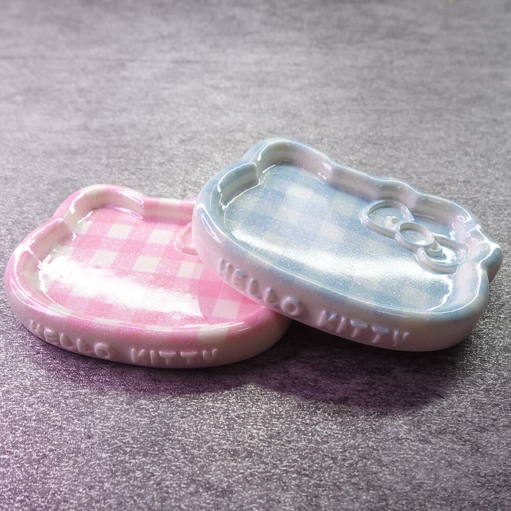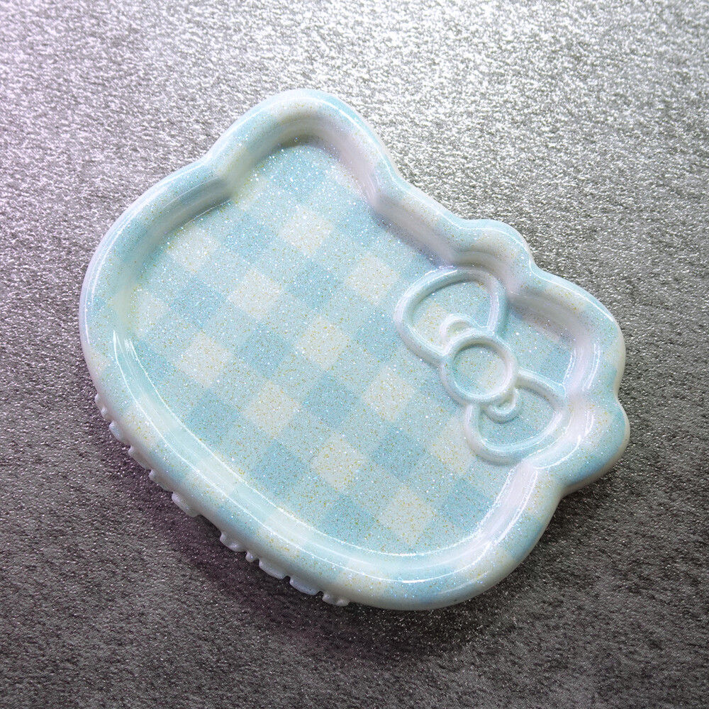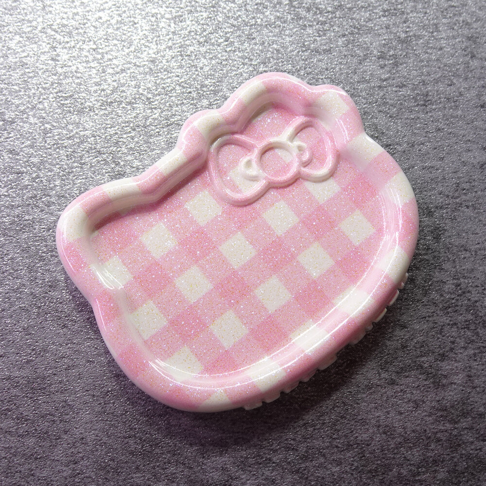 키티 얼굴이 각인 되어있는 우드 제질 신상 트레이에오.