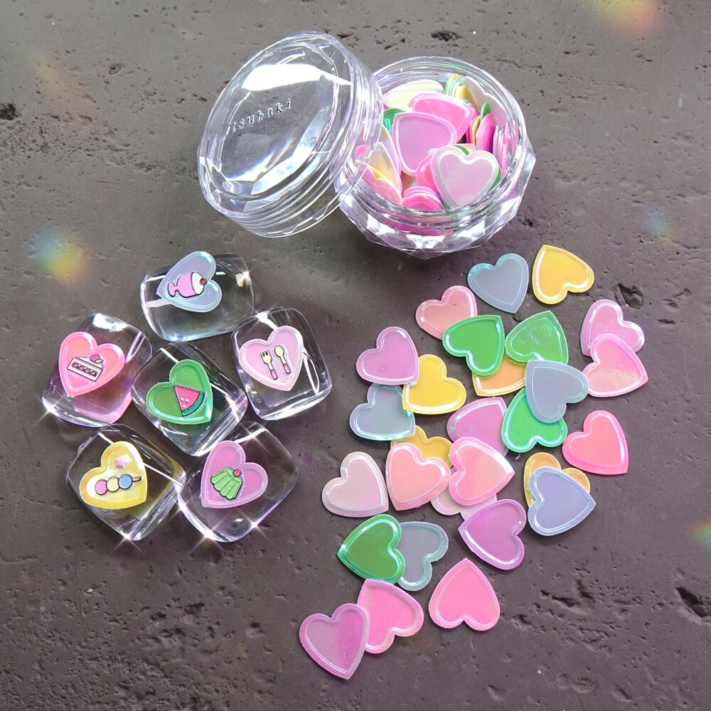 알록달록한 오로라 빛이 은은하게 반짝이는 하트 접시 글리터입니다. 하트 위에 스티커를 붙이거나, 케이크·쿠키 등 3D 파츠를 직접 만들어 올려주면 귀여움이 배로 살아나요! (⑅˘͈ ᵕ ˘͈ )🍰