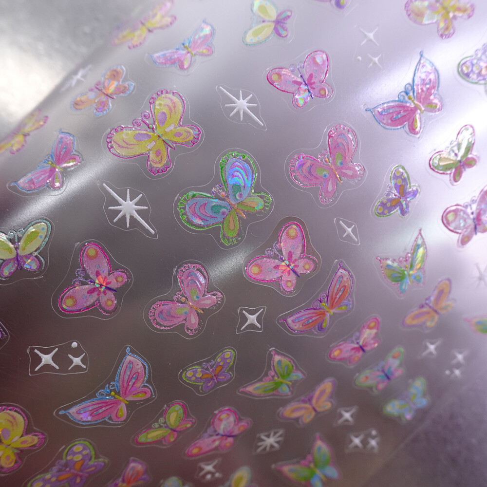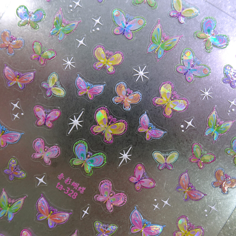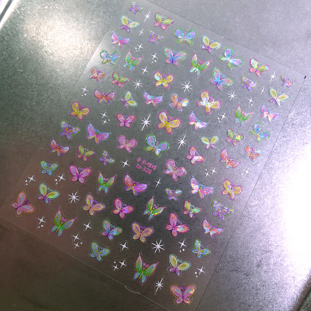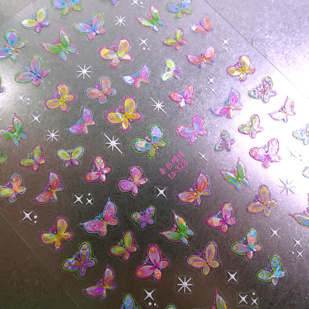 실물 너무 귀엽다!! 역대급 예쁜 나비 디자인,, 무늬랑 색감이 미쳤어요. 태닝 키티와 잘어울리는 알록달록 바비같은 하와이 나비 스티커. 키치 네일 포인트로 최고에오 *・° 🦋 ♫꒰・‿・๑꒱