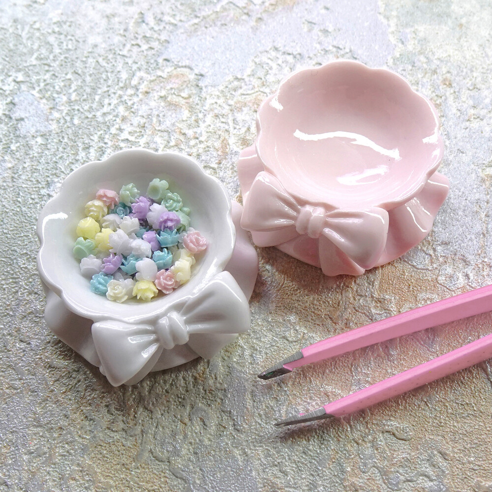 네일 파츠를 덜어 쓰기 좋은 사랑스러운 로코코 스타일 미니 트레이 입니다. 리본과 프릴 디테일이 더해진 디자인으로 올려두기만 해도 작업대 분위기를 한층 더 우아하게 만들어줘요. 컬러는화이트 핑크 두 가지 택.🤍🩰