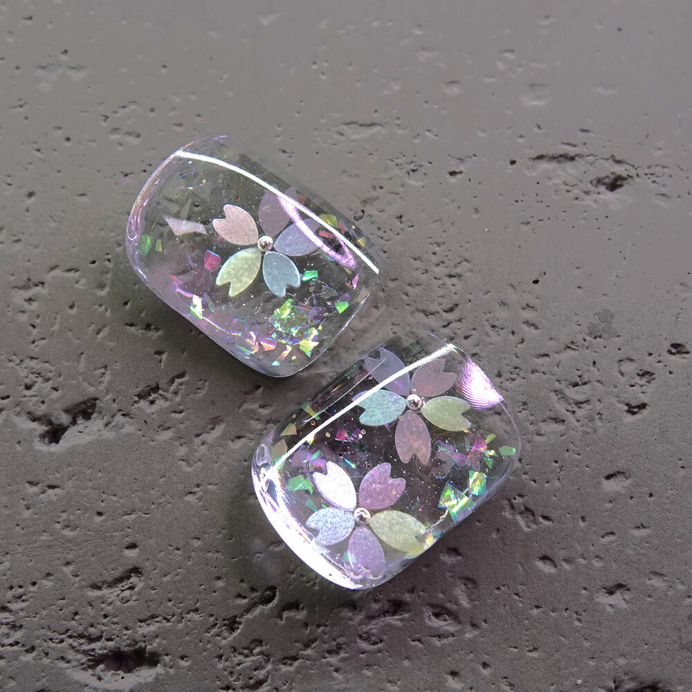 핑크·하늘·피치·보라·노랑 5가지 파스텔 꽃잎에 오로라 포일까지 더해져 손끝에 은은하고 영롱한 벚꽃 아트를 완성할 수 있어요.