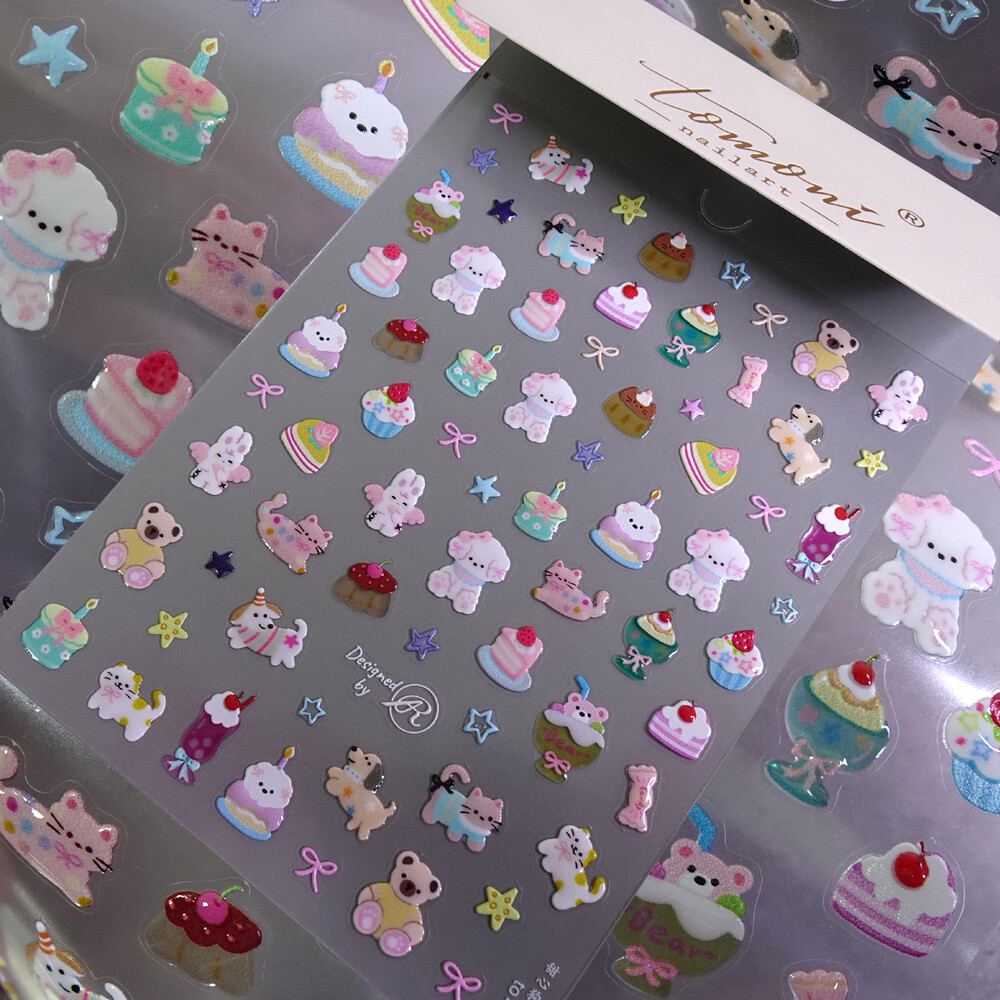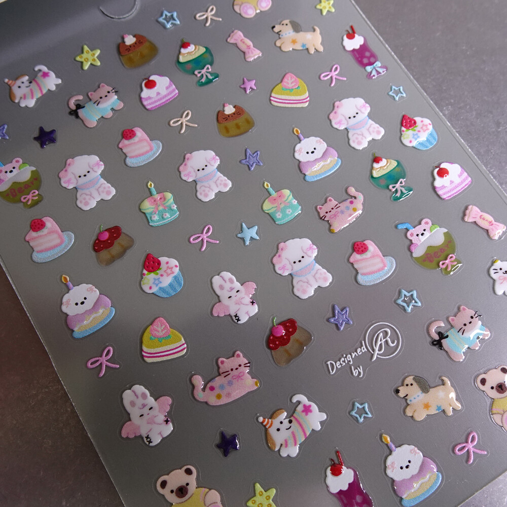 색감 짱 선명도 짱,, 당장 내손에 찹찹하고싶은 귀여운 신상 스티커 입고. 푸딩 소다 케이크 등에 디저트들과 사랑스러운 동물 친구들이 한가득!! 고양이 멍뭉이 그림이 넘 귀여워요 아기자기한 사이즈로 쪼꼬미 손톱에도 예뻐요 (⋆❛ ہ ❛⋆)!