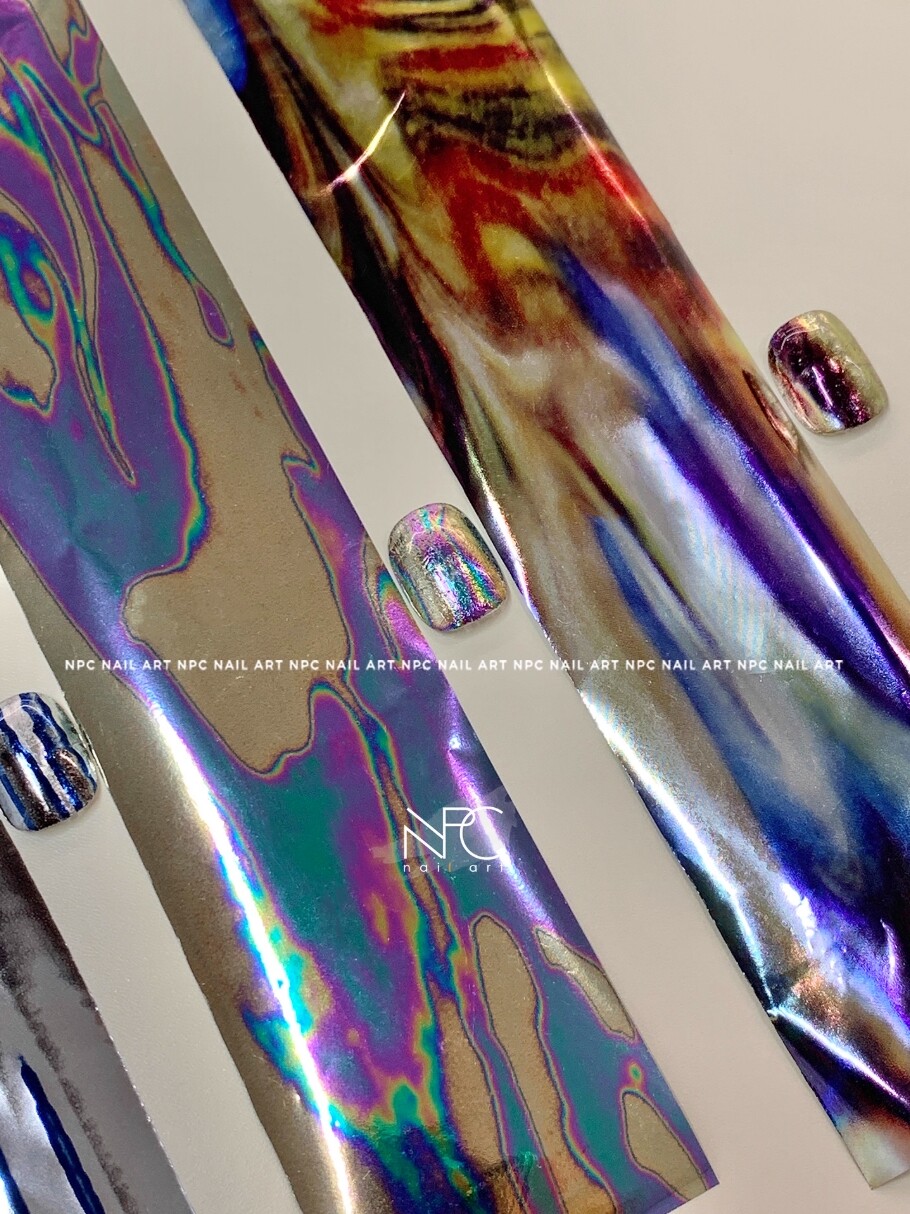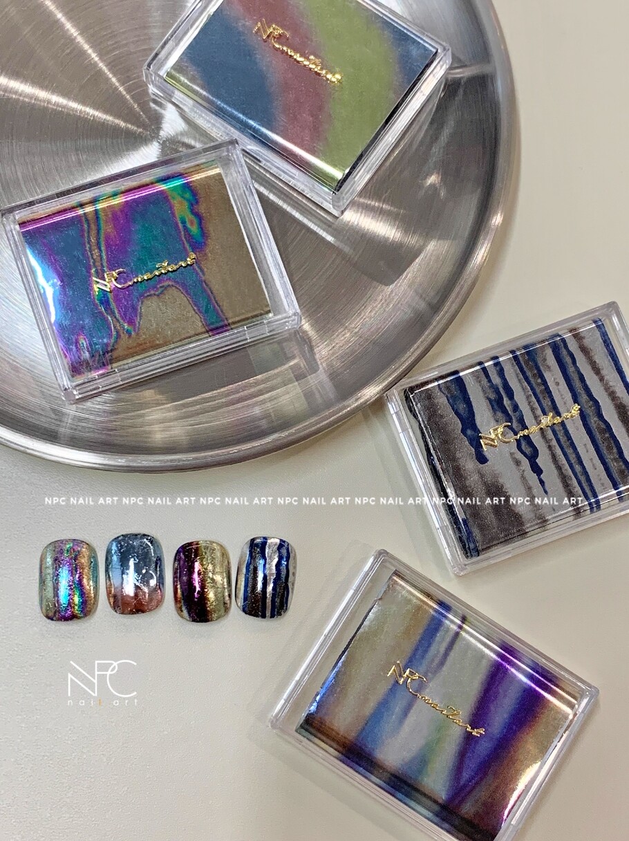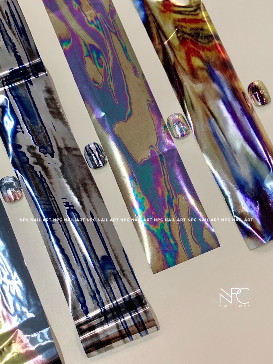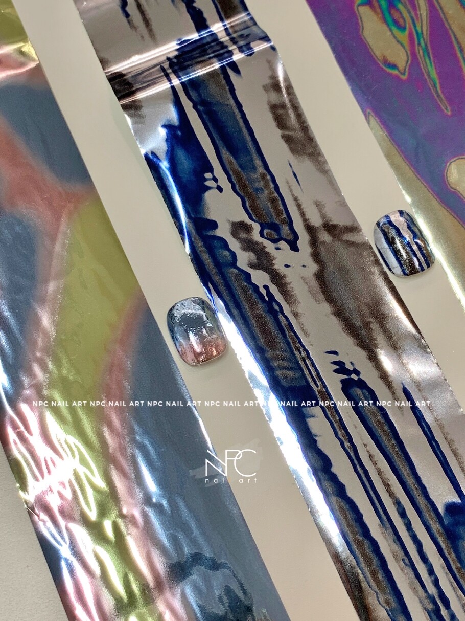 감각적인 블루 잉크 스틸 포일과 오로라 카멜레온 메탈 포일 2종이 입고되었습니다. 고광택 메탈 텍스처로 영롱하면서도 시크한 유니크 크롬 아트를 연출할 수 있어요.클리어 위에 단독으로 사용해도 예쁘고,뉘앙스 아트에 부분적으로 톡톡 찍어주면 더욱 느낌 있게 표현됩니다.