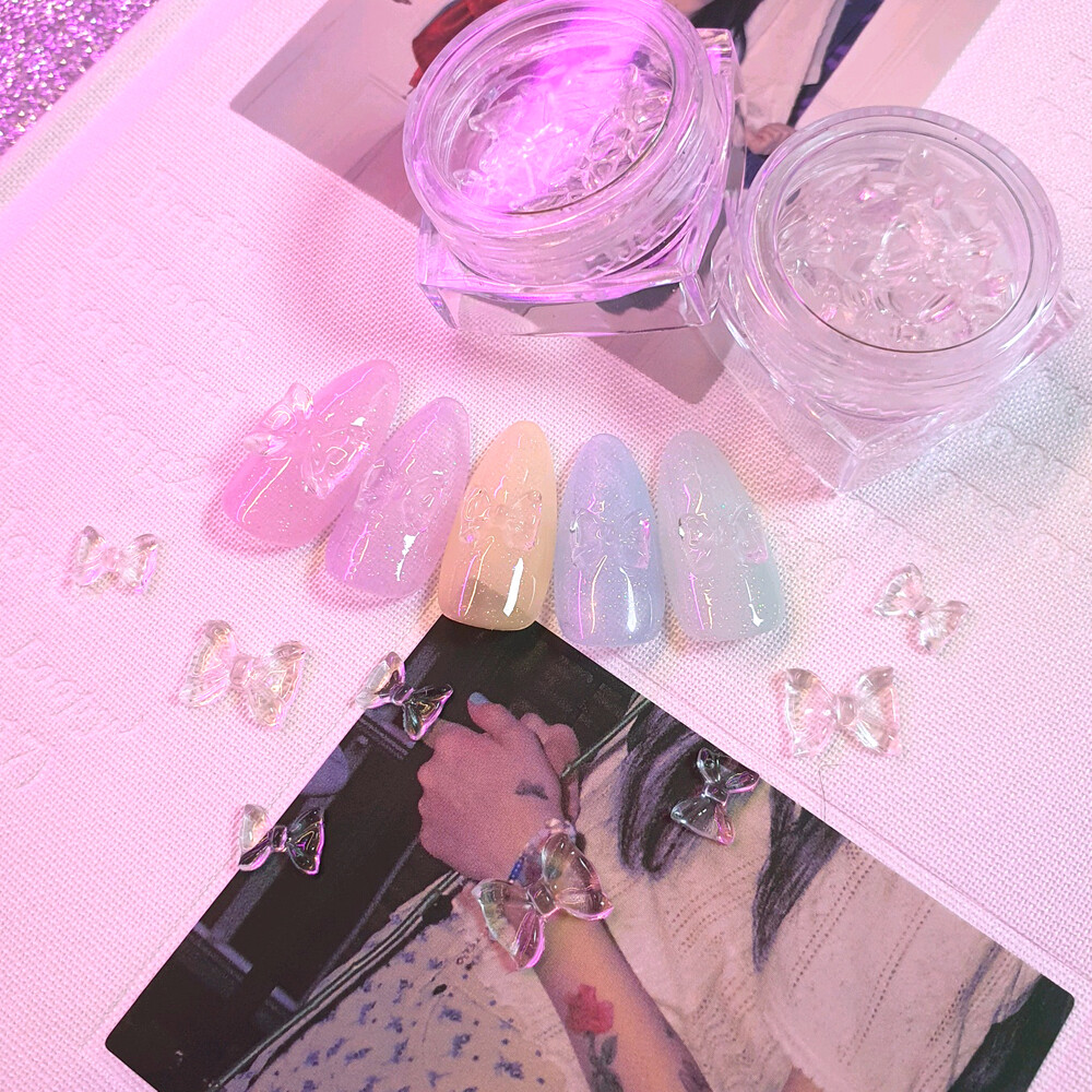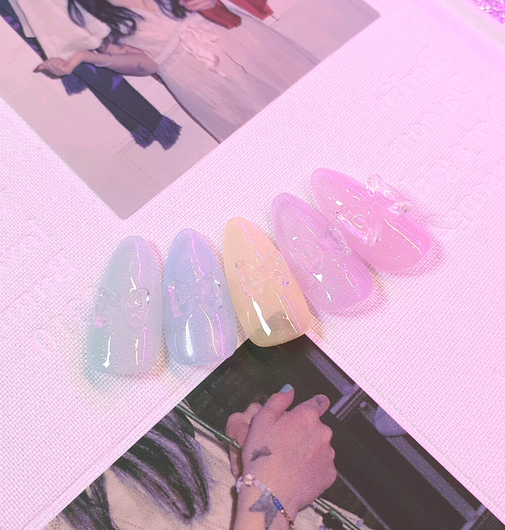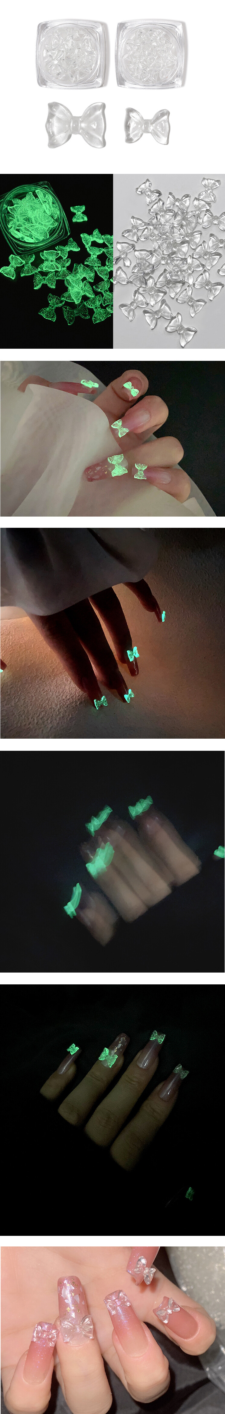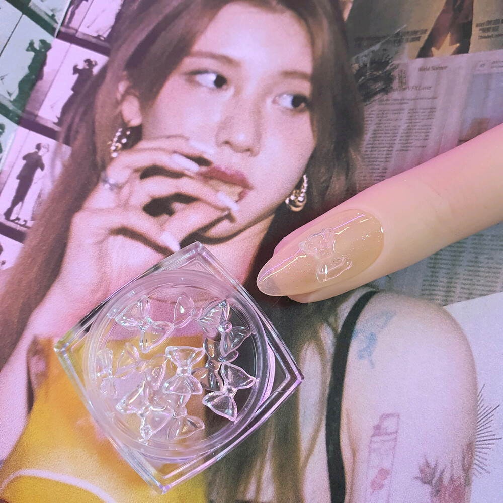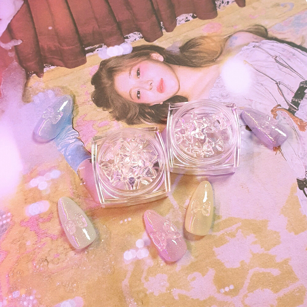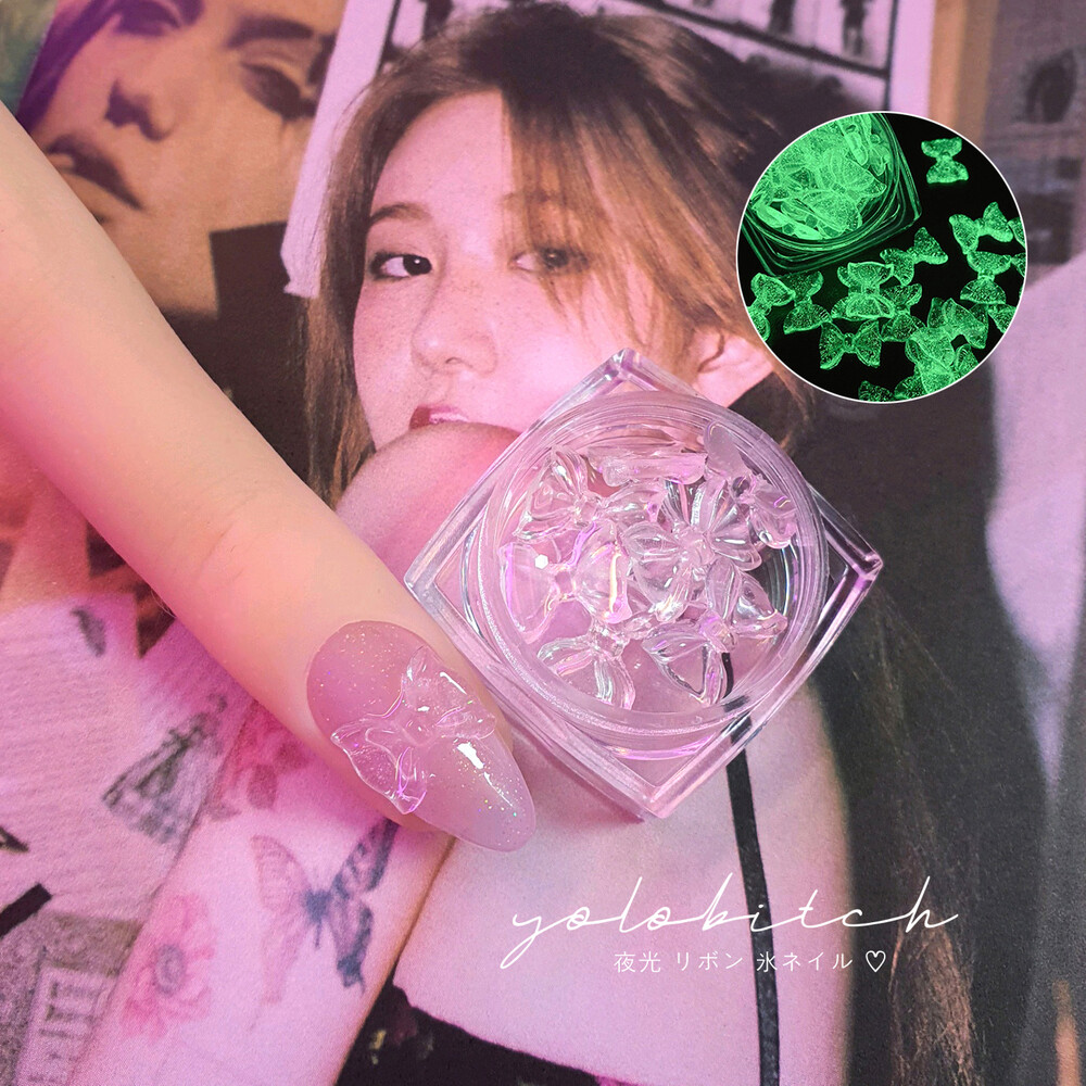 야광 뿜뿜! 얼음처럼 투명하고 예쁜 아이스 리본 파츠 입니다. 넉넉한 10ps 세트로 열 손가락 모두 찹찹해주시면 밤에 화려하고 넘 귀여워요 깨끗한 너낌으로 오로라 네일 포인트로도 채고. ꈍ◡ꈍ