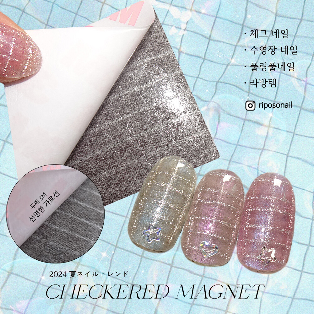 풀링풀 네일 _ 3M 체크 무늬 사각 자석