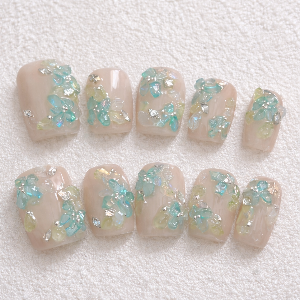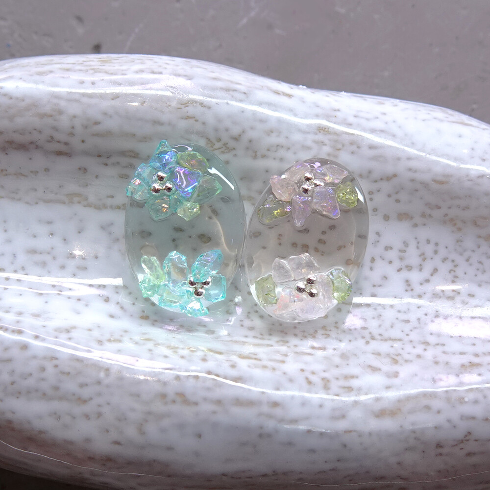 빛을 받을 때마다 은은하게 번지는 오로라 광이 정말 영롱한 스톤이에요.투명한 얼음 조각 같은 텍스처에 각도마다 달라지는 컬러감이 더해져 분위기 있고 우아한 아트를 완성해줘요.