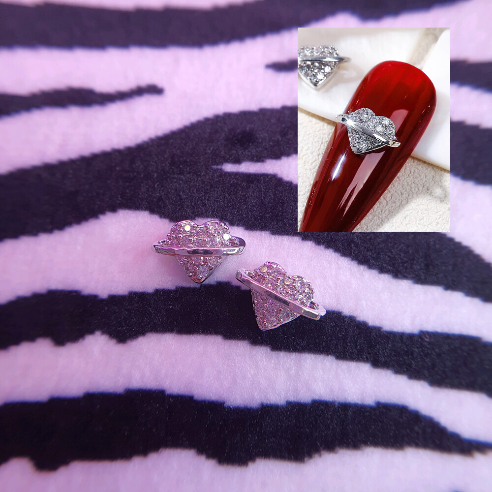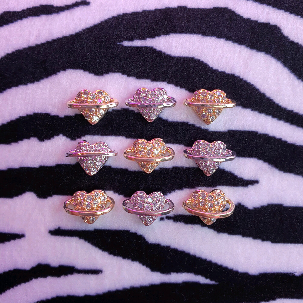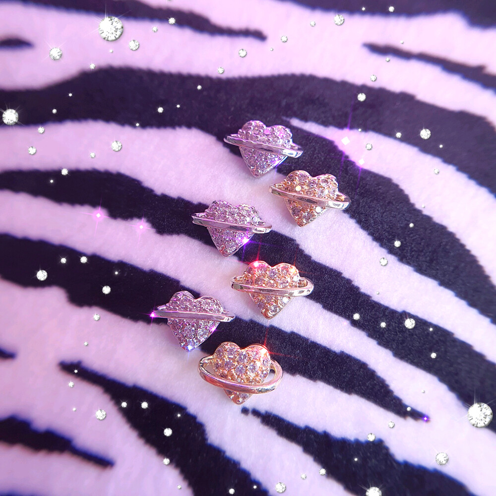 한눈에 반한 디자인! 블링블링 고급스럽고 무드있는 우주 하트 파츠입니다. 스페이스 모양이 뭔가를 걸수있게 고리 타입으로 되어있는 디자인이라 오링을 달아서 나만에 댕글 파츠를 만들어서 연출하면 유니크하고 예쁠 것 같아요. ꈍ◡ꈍ