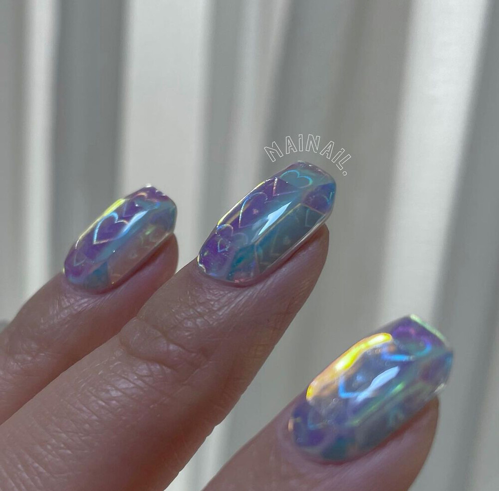 # 우루우루 # 프리즘 하트빔 # 홀로그램 네일 # 하트 뿅뿅