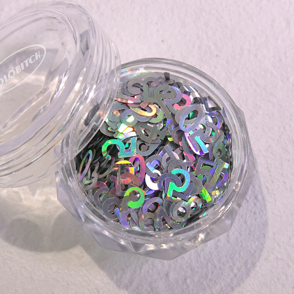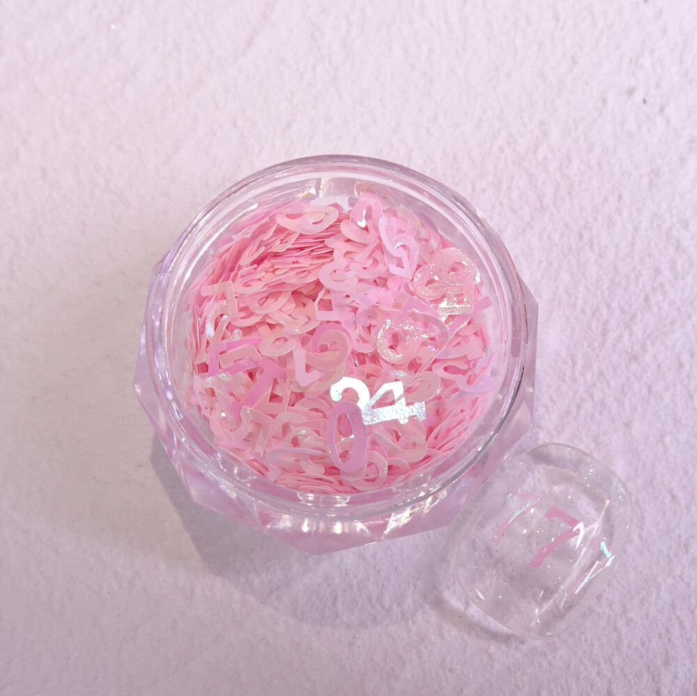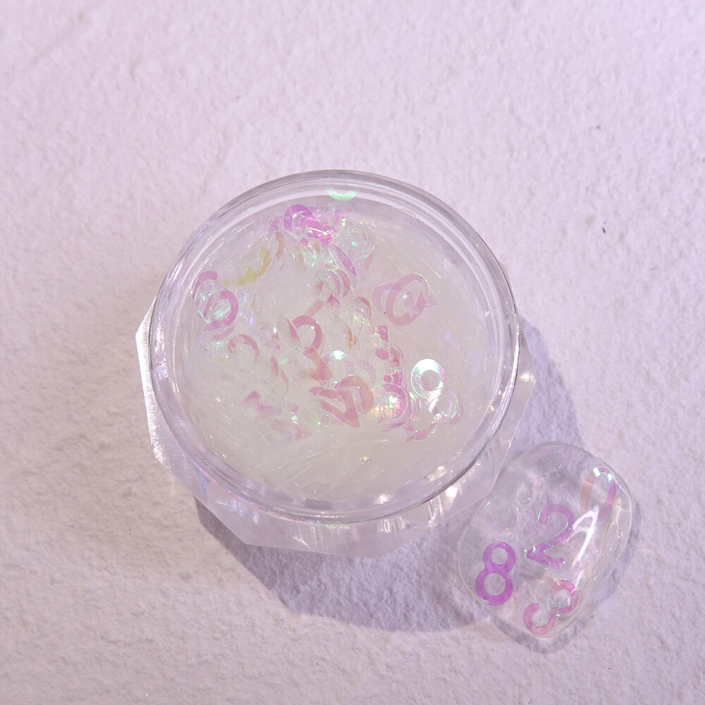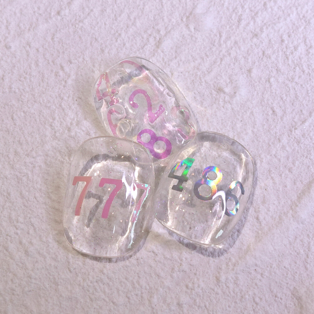 유니폼 숫자 폰트로 더욱 힙하고 귀여운 넘버 글리터 입니다. 홀로그램 , 오로라 등 색감이 사랑스럽고 스트릿 키치 네일 등에 포인트로 예뻐요! ٩(˘◡˘ )