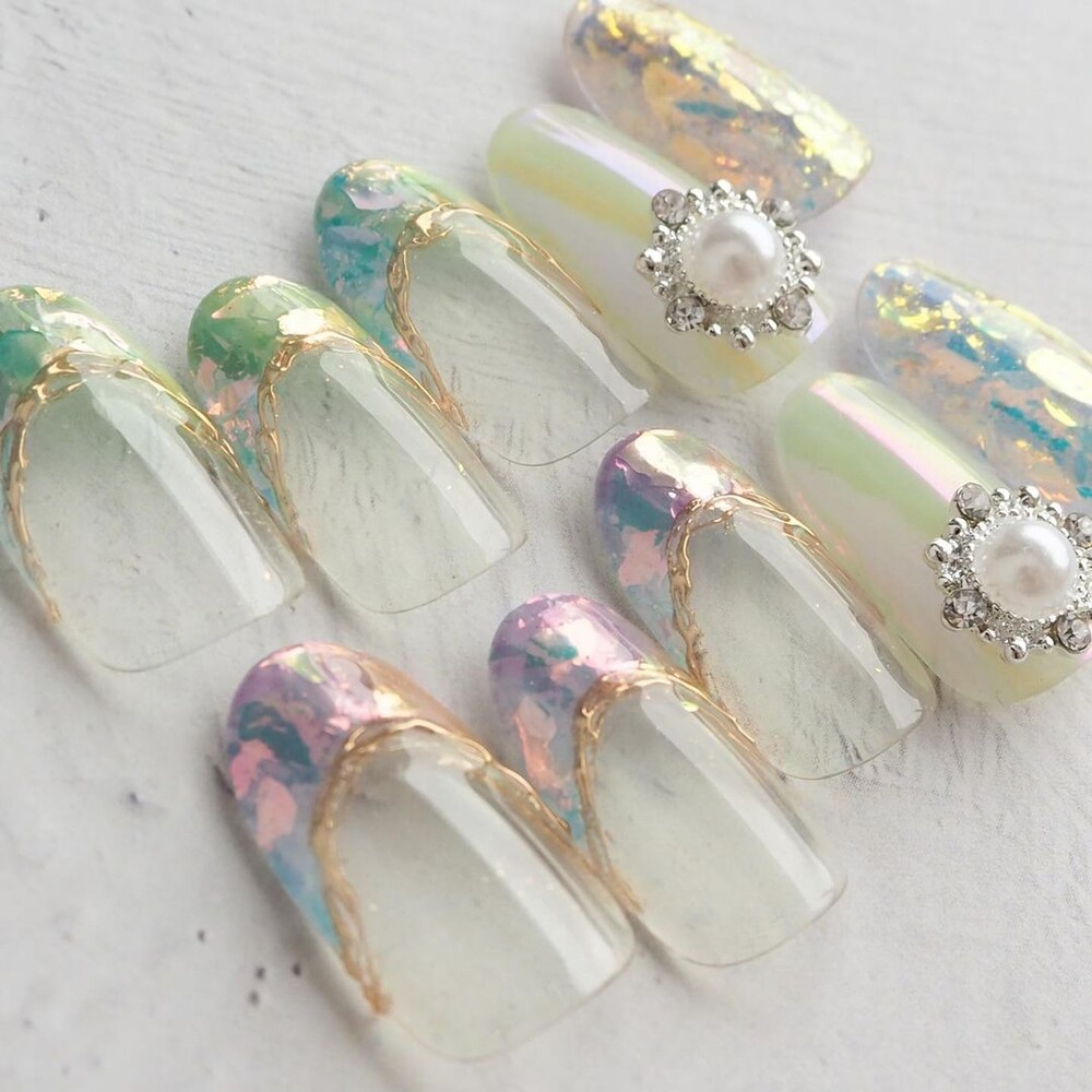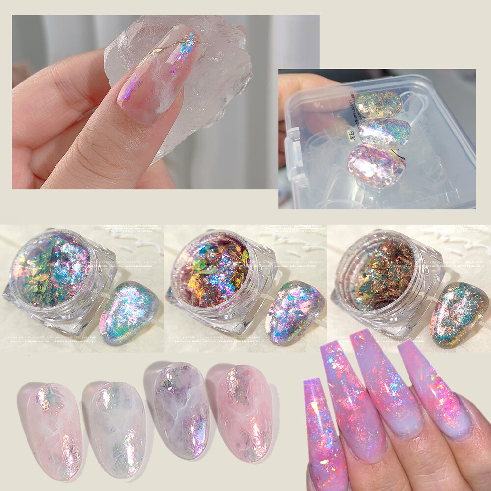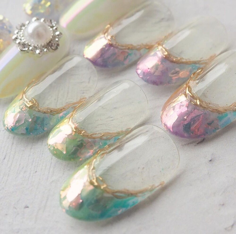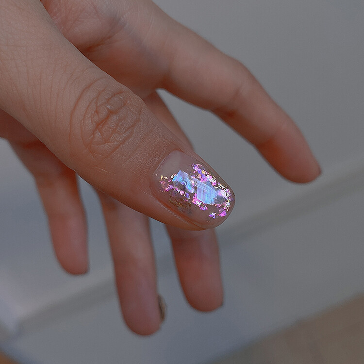 아트가 2% 부족할때 요고 하나 톡톡해주면 순식간에 요정미 뿜뿜. 시럽 마블이나 뉘앙스네일 할때 올려줘도 예쁘고 단독으로 풀콧 해줘도 영롱하고 신비로와요. 실크처럼 얇은 포일 파우더라 밀착력이 아주 우수하고 영롱함이 우주 최강이에요. 놓치면 후회할 슈퍼 요정템 이랍니다. ( ͡° ͜ʖ ͡°) ⋆⁺₊⋆