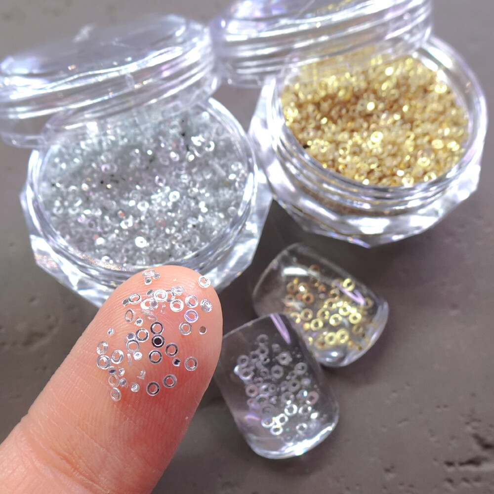 역대급으로 작은 1.2mm 사이즈의 글레이즈 시퀸 글리터입니다. 실물 정말 영롱하고 귀여워요 ♡˖°