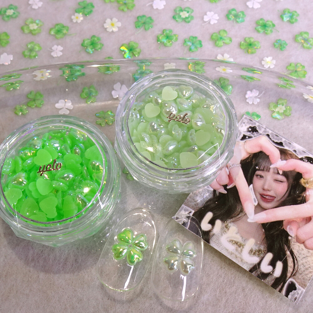행운을 주는 네잎 클로버 디자인 네일 스티커 입니다. 홀로 자개로 다각도록 반짝반짝 빛나요 별다른 아트 없이 클리어 위에도 포인트로 힙하고 귀여워요. ( ˃̣̣o˂̣̣ )💚
