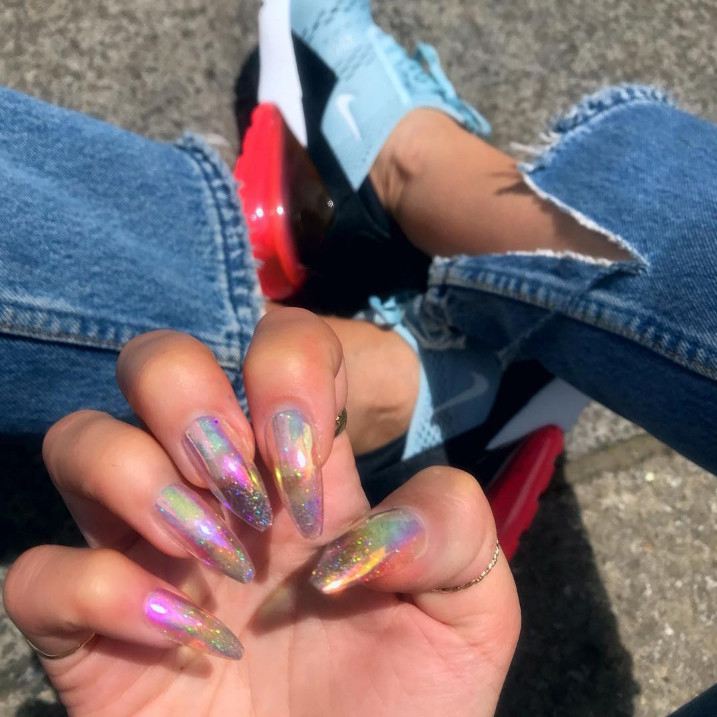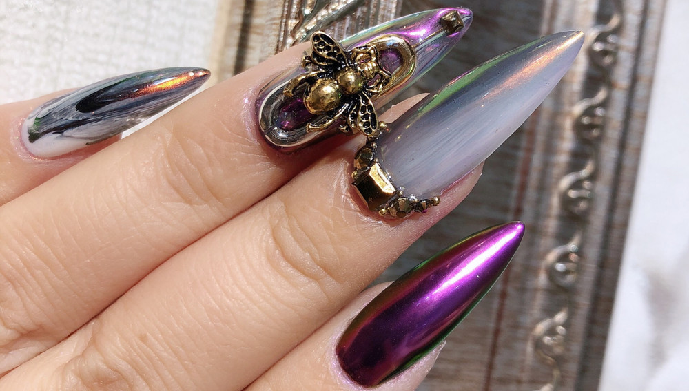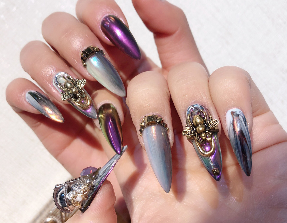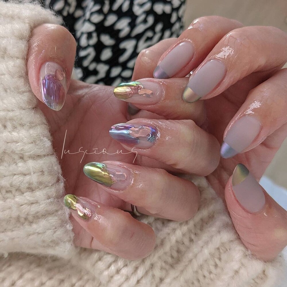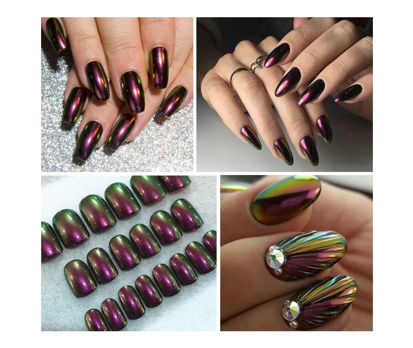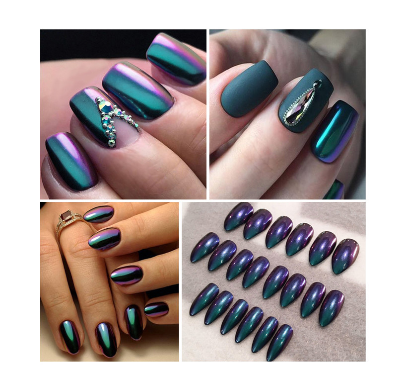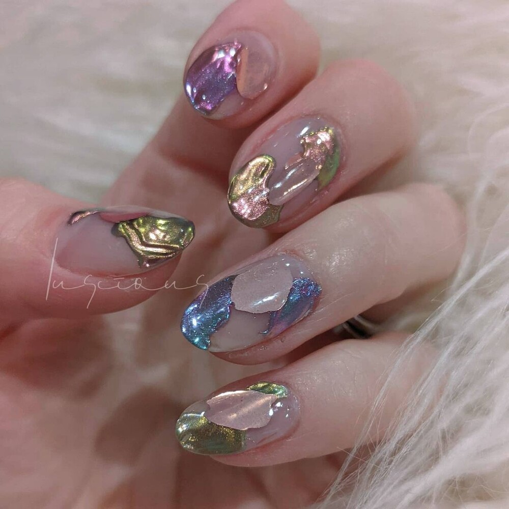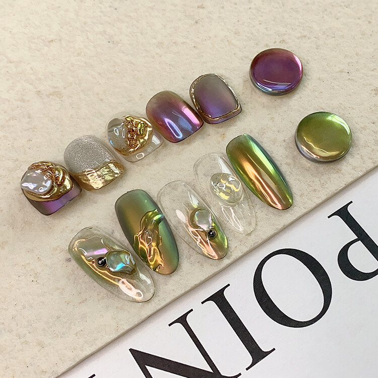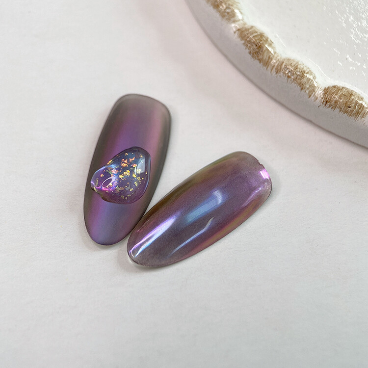 - 유리 필름 파우더와 함께 어두운 배경이 아닌 맨손톱에 얇게 원콧해서 연출해주면 영롱하고 예쁘답니다.