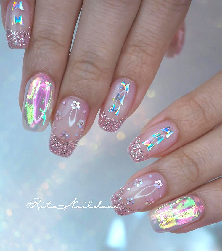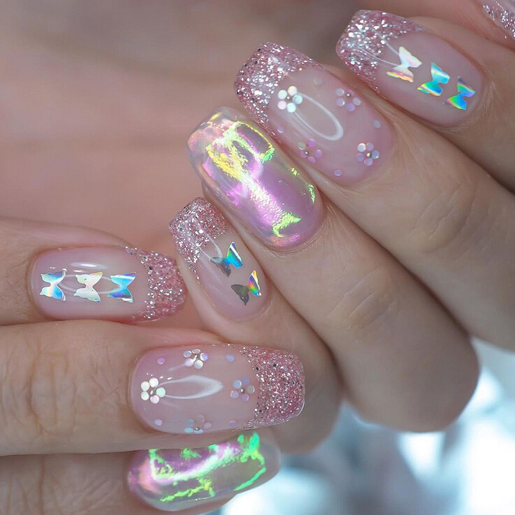 # 봄 네일 # 나비네일 # 실버네일 # 키치네일