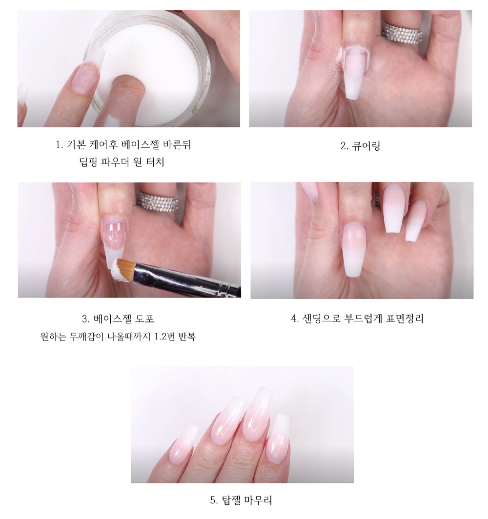 컬러 믹싱한 딥핑 파우더는 탑젤이나 클리어젤 섞어서 원콧만 해줘도 엄청 튼튼해요.