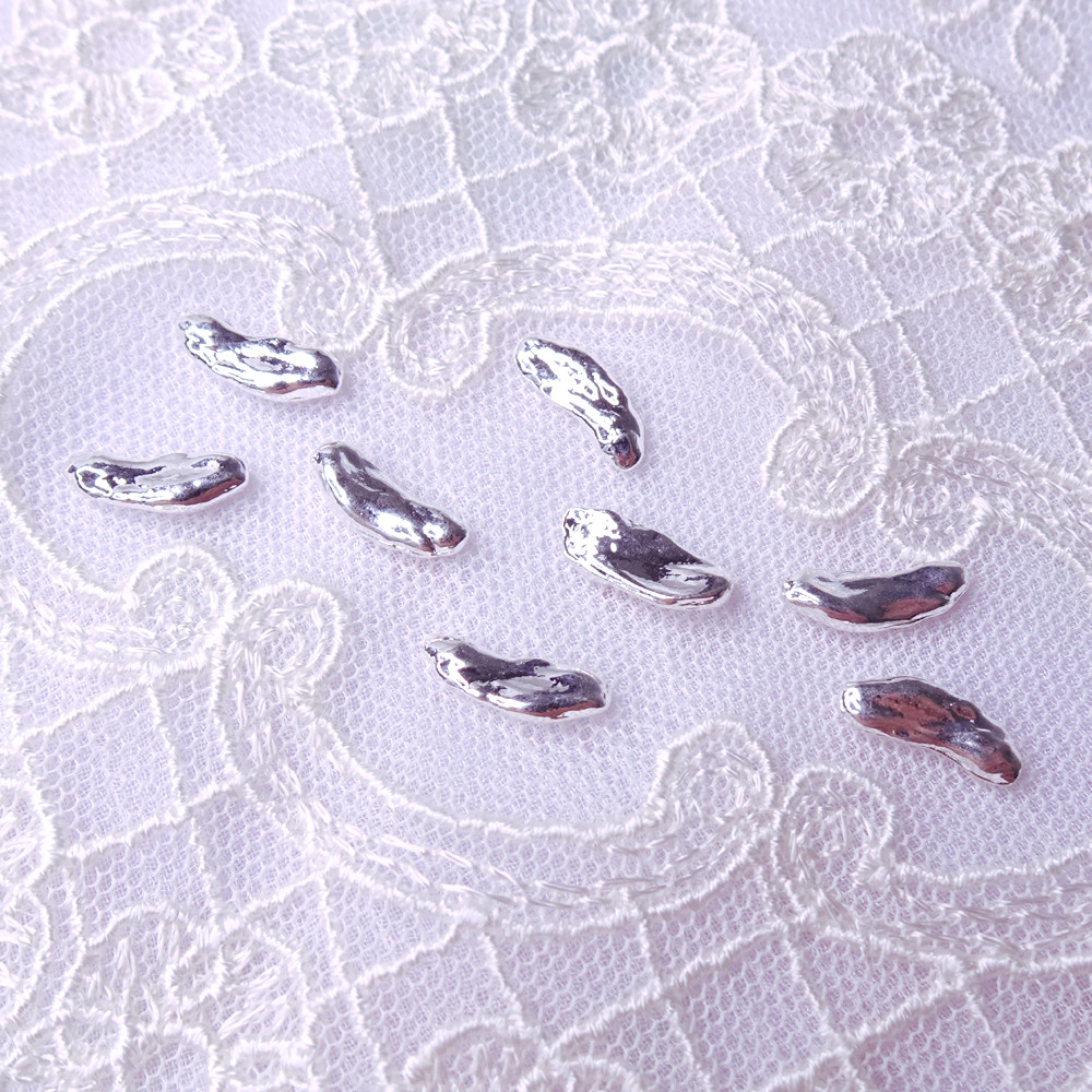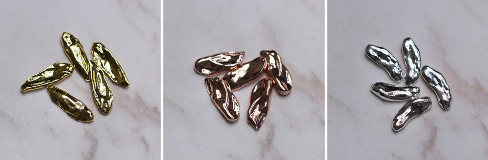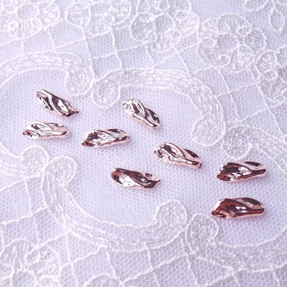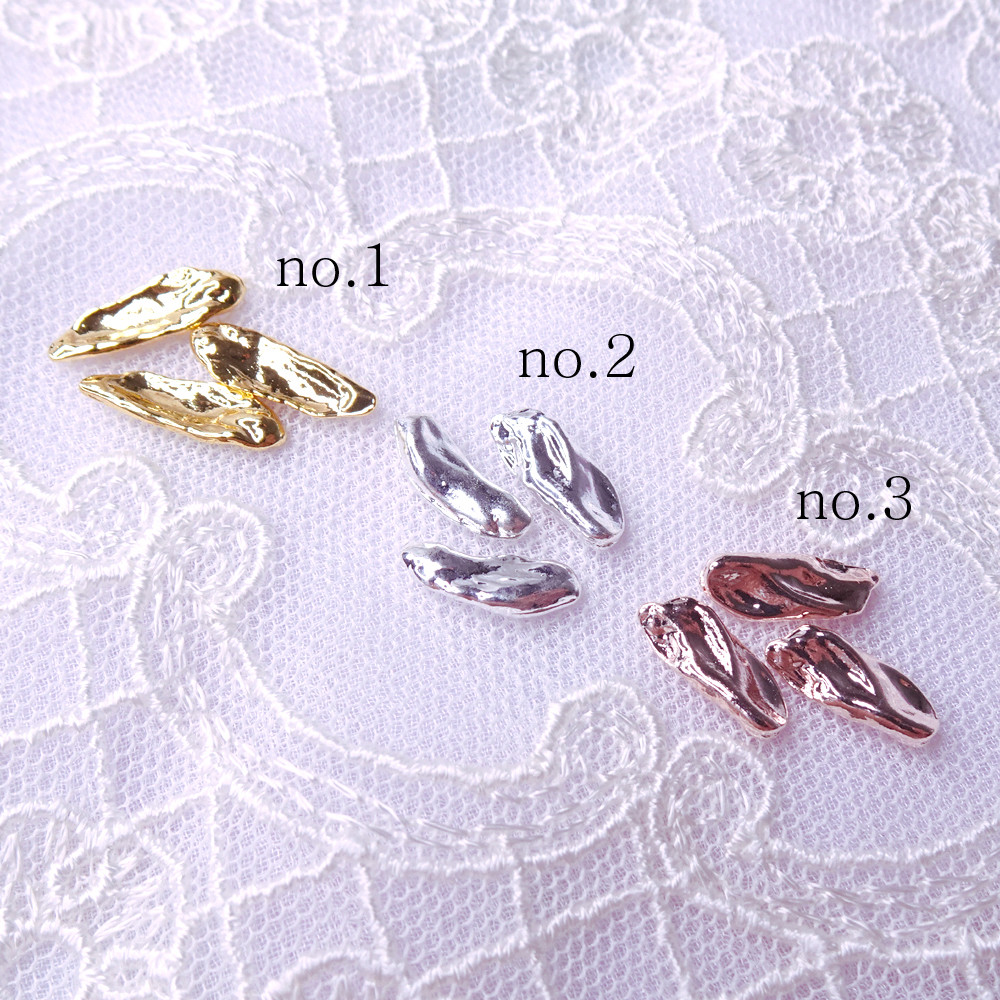 마블이나 뉘앙스 네일에 포인트로 하나씩 올려주면 느낌있는 볼드한 물결 모양 금속 스톤입니다. 베이지 오트밀 카키 등 시럽매탈 분위기 나는 오묘한 아트에 올려주면 고급스럽고 예뻐요 ♡⁼³₌₃
