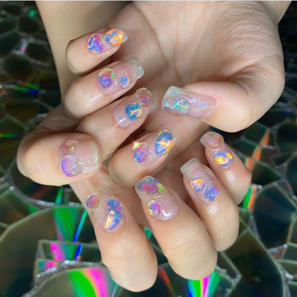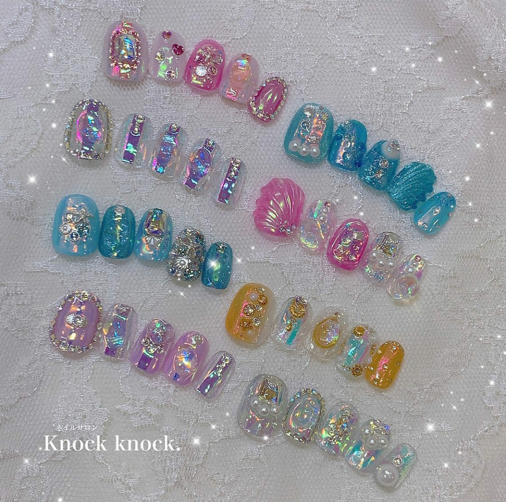 요즘 키치한 아트나 몰드네일 뉘앙스네일 등 여러 아트에 자주 활용되는 오로라 포일 세트 입니다. 유리조각처럼 컷팅해서 시럽컬러 안에 가둬준뒤 아트하면 넘 영롱하고 예뻐요. 20가지 다양한 컬러로 가성비 짱짱템이니 하나씩 꼭 소장하세요 ♡♡♡
